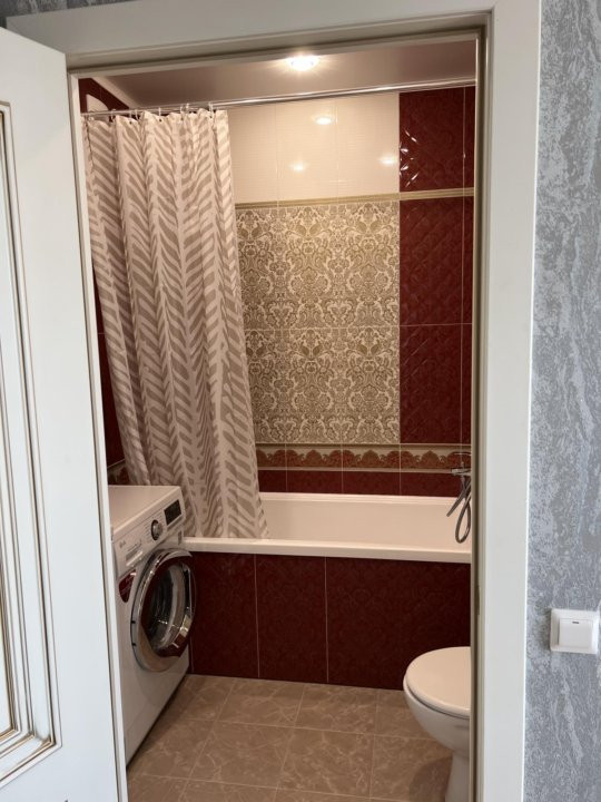 В ванной комнате установлена стиральная машина. В прихожей есть шкаф для одежды.