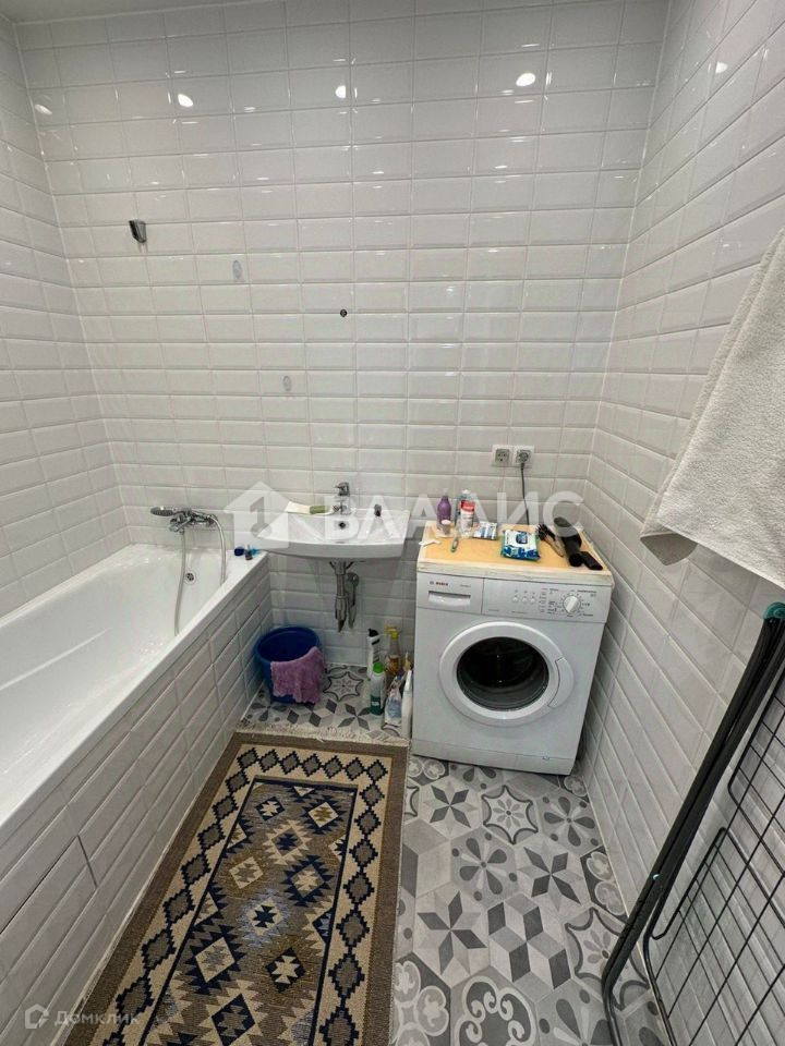 В ванной: стиральная машина, электрический полотенцесушитель.