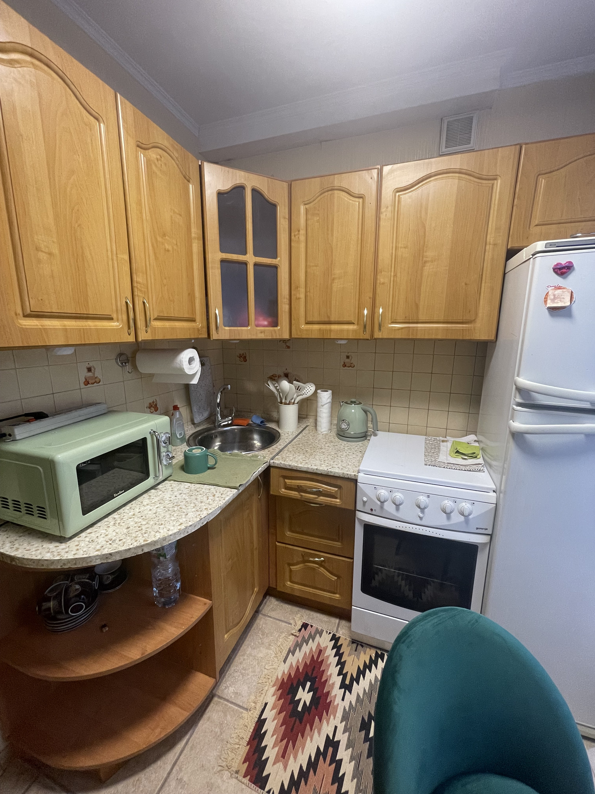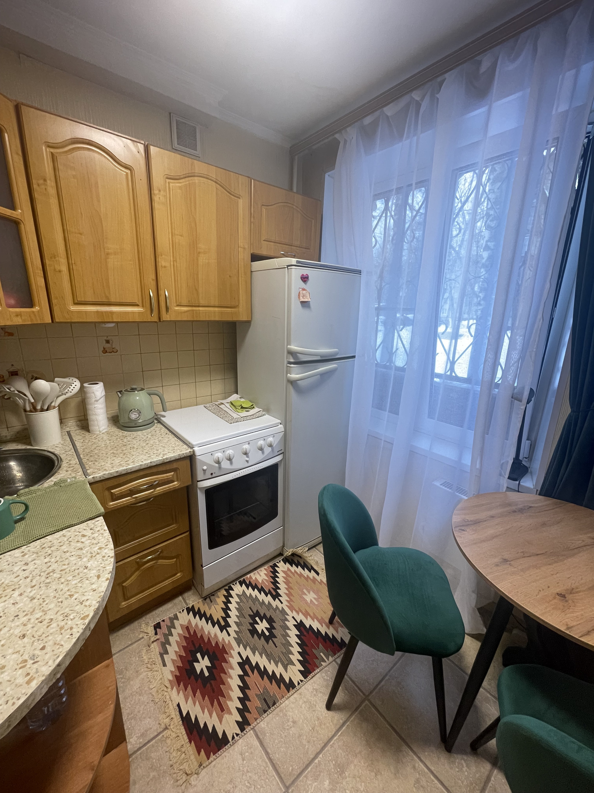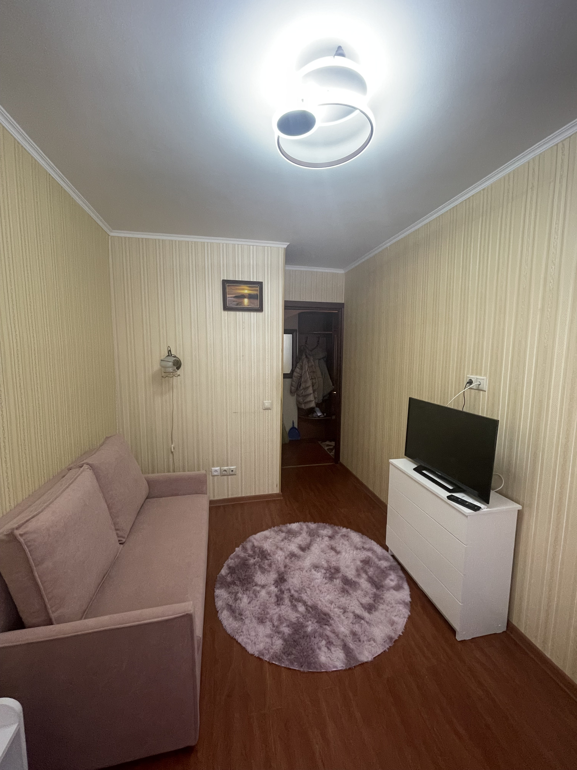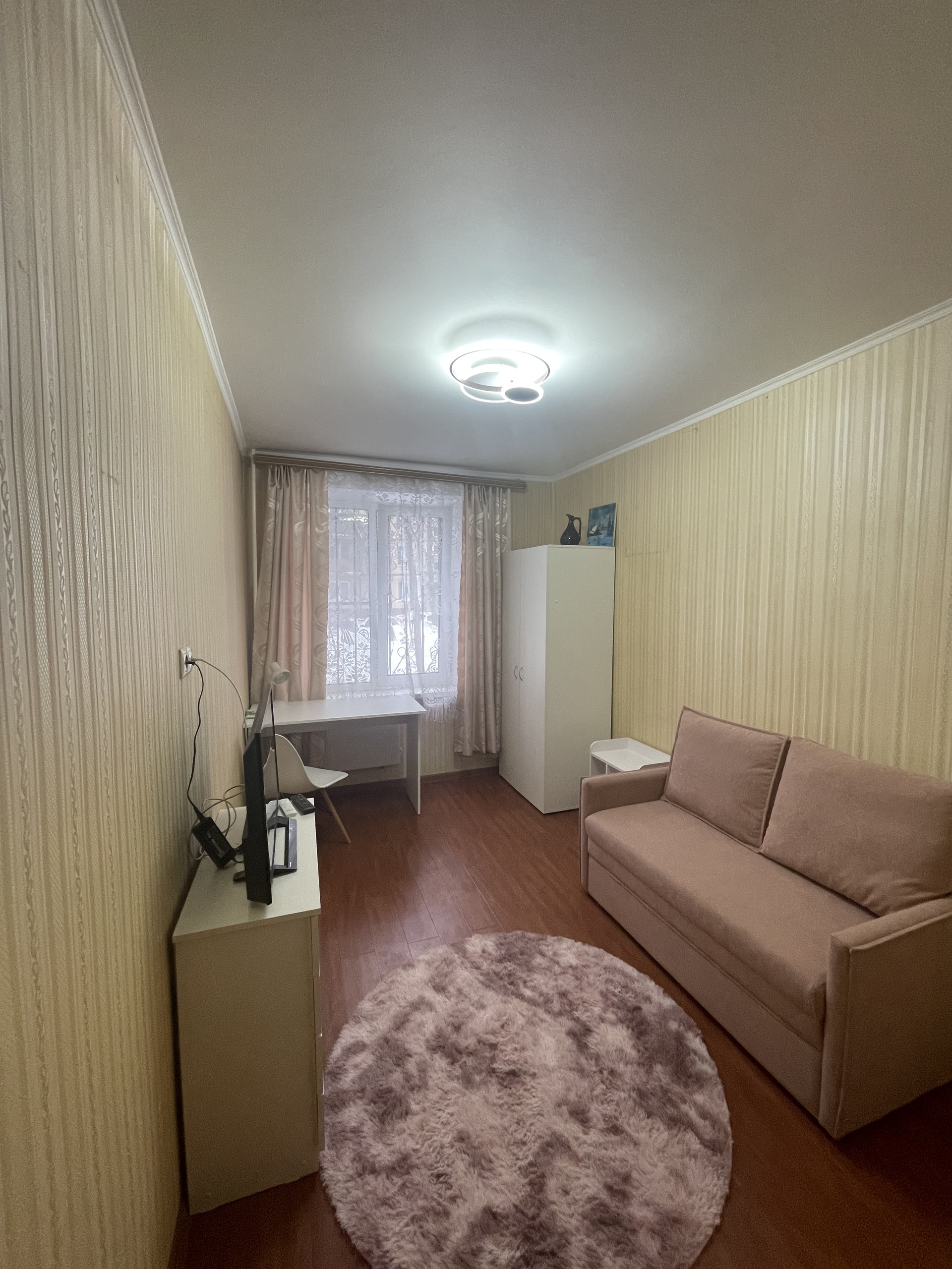 В квартире выполнен косметический ремонт, имеется все необходимое для комфортного проживания: кухонный гарнитур, холодильник, шкафы, раскладывающийся диван в гостиной и раскладывающийся диванчик в детской/кабинет, стиральная машина, 2 телевизора, микроволновая печь. Комнаты изолированные (18 и 14 кв.м.), на окнах установлены решетки, WI-FI.