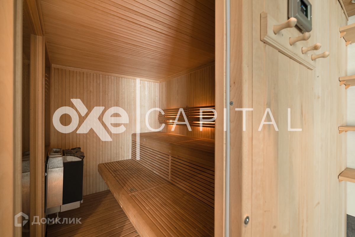 2 санузла, 1 гостевой санузел, гардеробная.  Просторная терраса с видом на лес, сауна, бассейн.