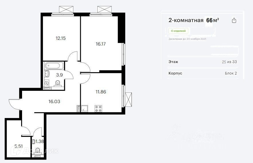 Общая площадь 66 м2
