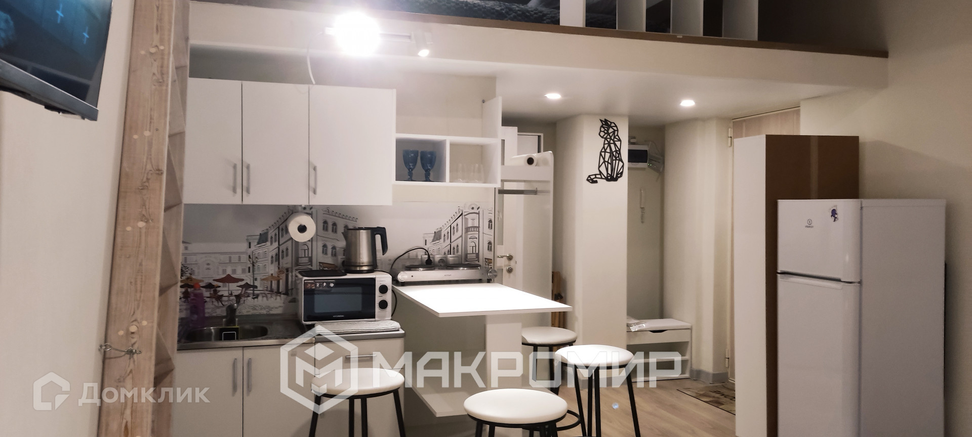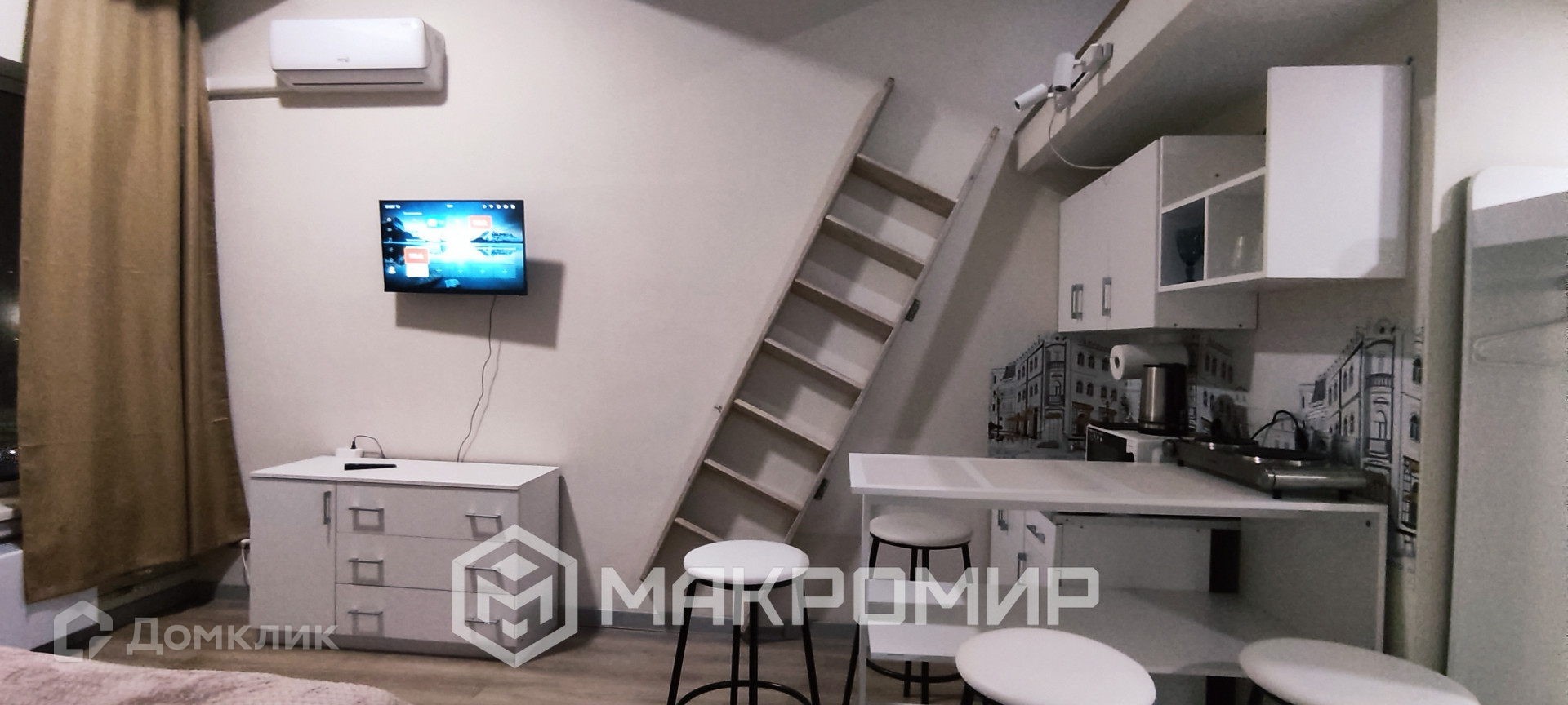 Чайник, микроволновка, варочная панель, необходимая посуда. Холодильник. Кондиционер.