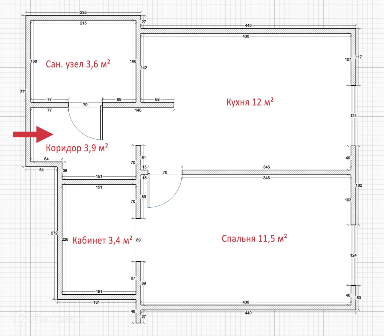 Общая площадь 34 м2