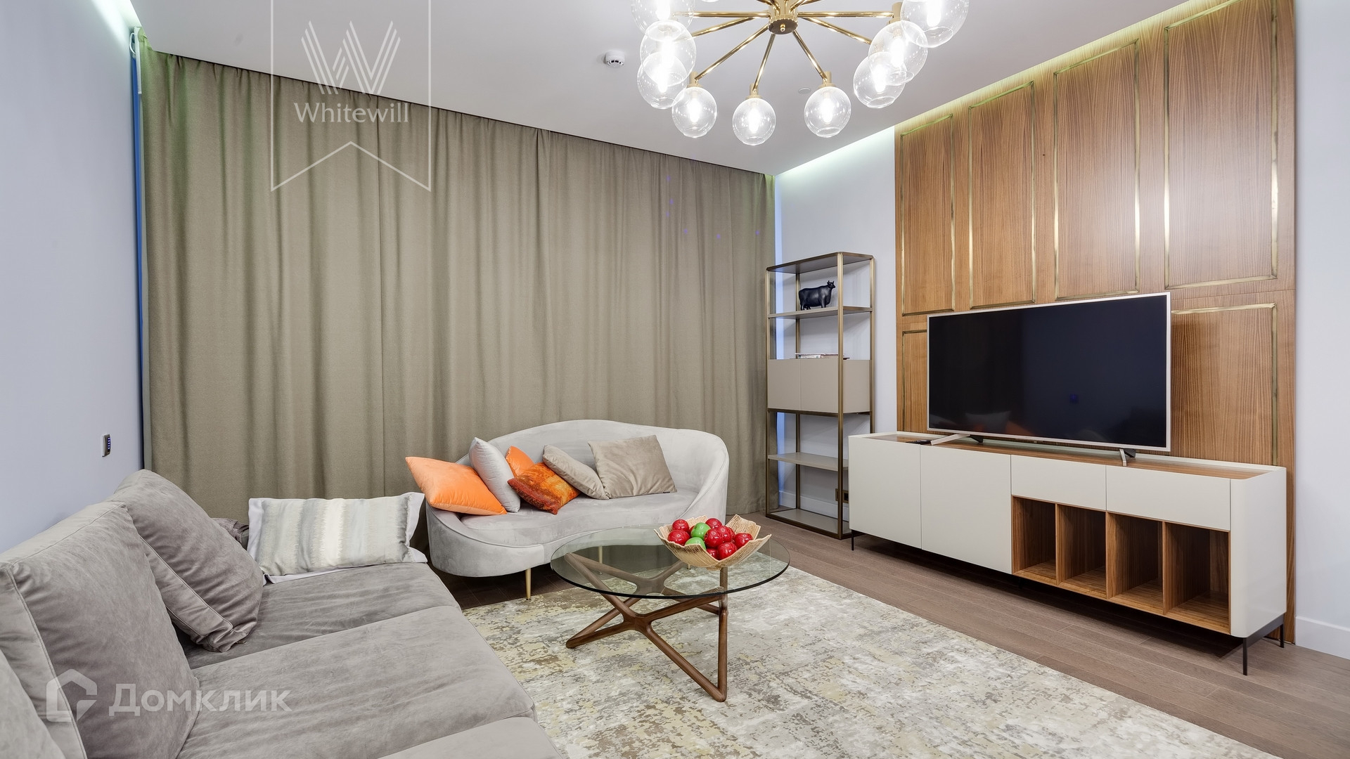 ID 39 Апартаменты общей площадью 122 м² в комплексе «Звёзды Арбата» на 7 этаже. Премиальные апартаменты с личным гостиничным сервисом от Marriott 5*.  Выполнена светлая отделка с использованием натурального дерева. На полу плитка, керамогранит, инженерная доска и ковры. Установлена мебель, угловая кухня с барной стойкой и высокими стульями, бытовая техника. Авторские подвесные светильники в виде полупрозрачных шаров.
