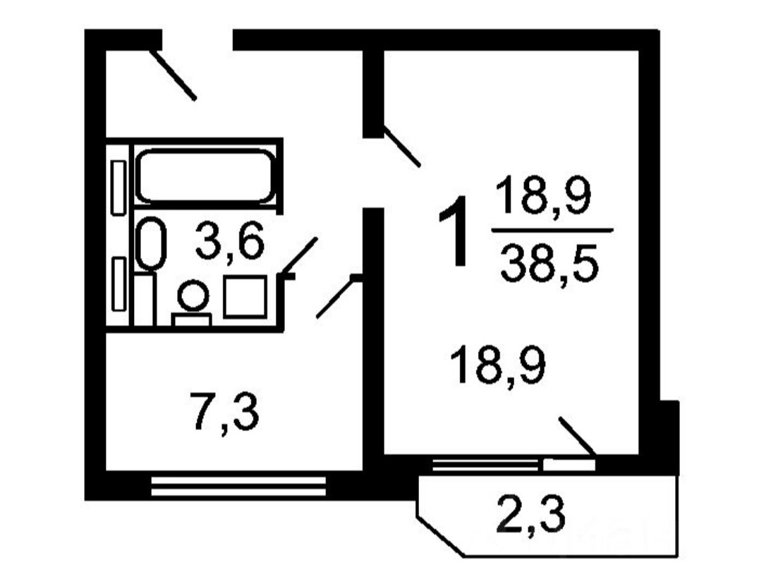 Балкон, лоджия 1 балкон