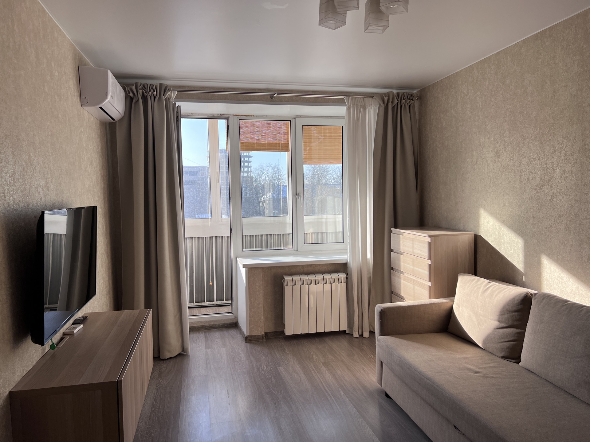 Без комиссии. Сдается 2-х комнатная квартира с шикарными видовыми характеристиками на Москва-сити и парк Горького. В квартире сделан хороший ремонт, полностью оборудована для комфортного проживания. Готова к заселению. Кондиционеры установлены в каждой комнате и кухне, бытовая техника - холодильник, посудомоечная машина, стиральная машина, телевизор. Шкаф в прихожей, большая двухспальная кровать в спальне. До метро Октябрьская 5 минут пешком.