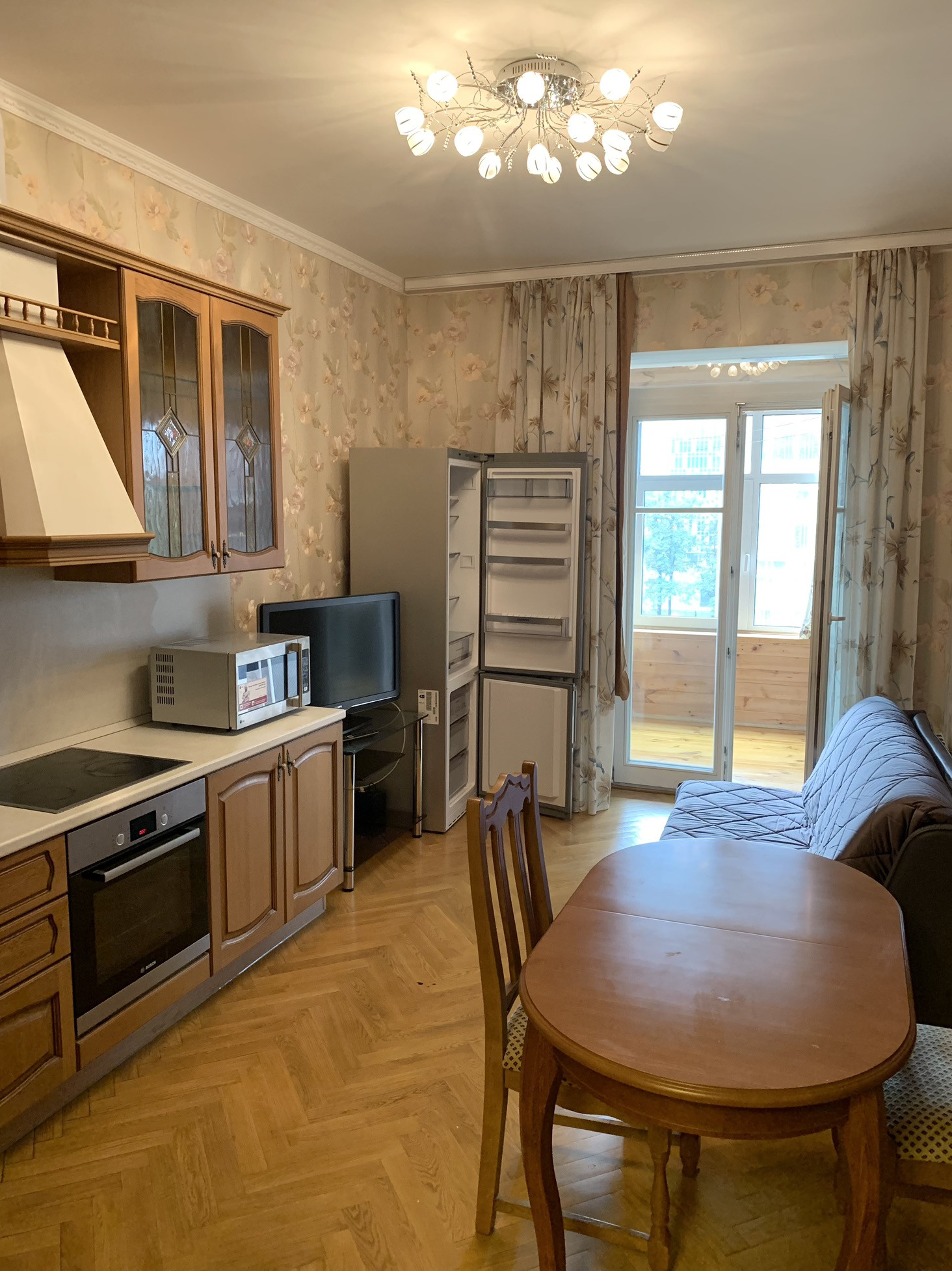 Балкон уложен премиальным деревом - летом можно сделать отдельную комнату, очень комфортно.