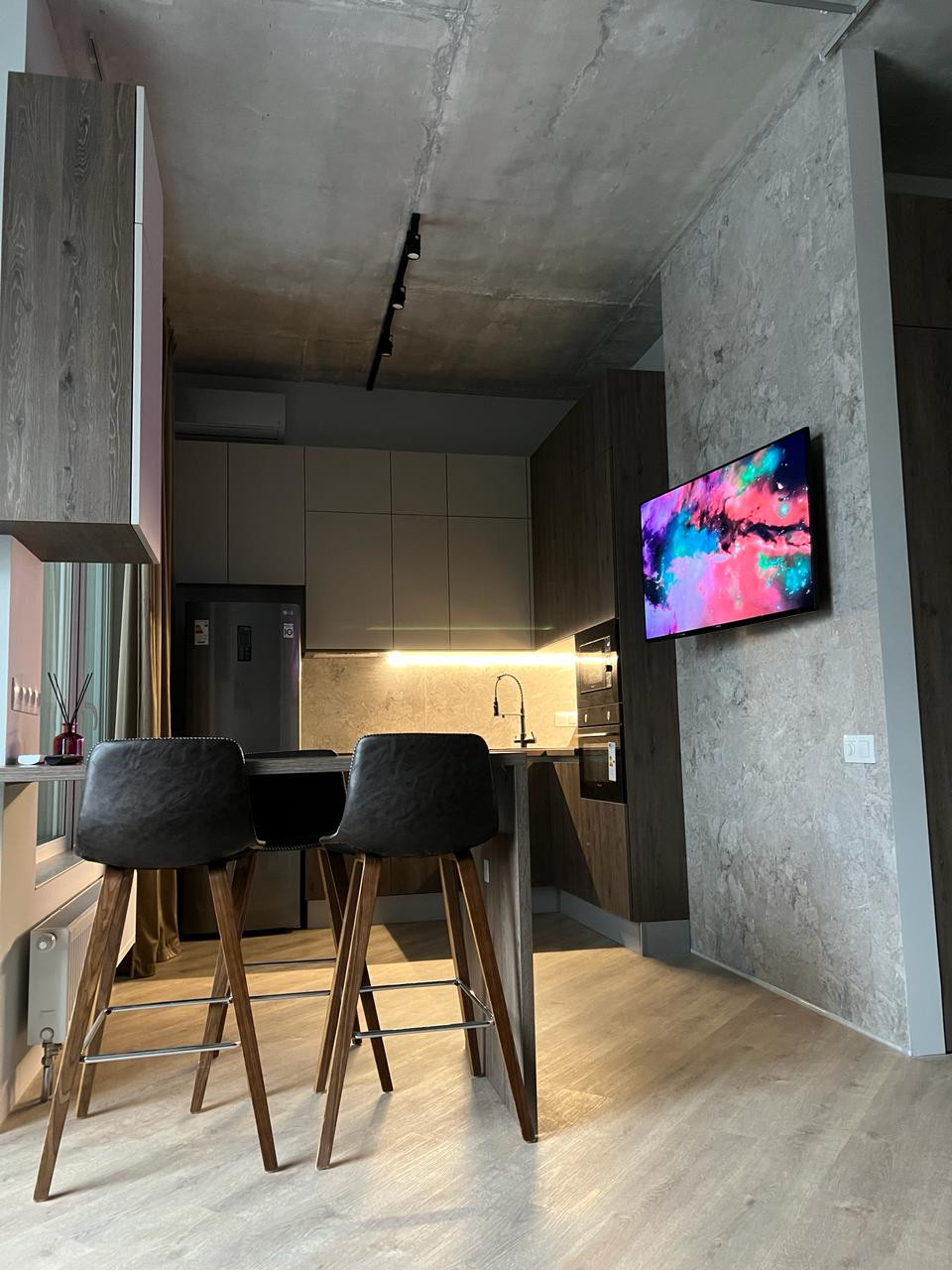 Ремонт дизайнерский, стиль лофт/ бетон  (последние тенденции),  продуман до мелочей.