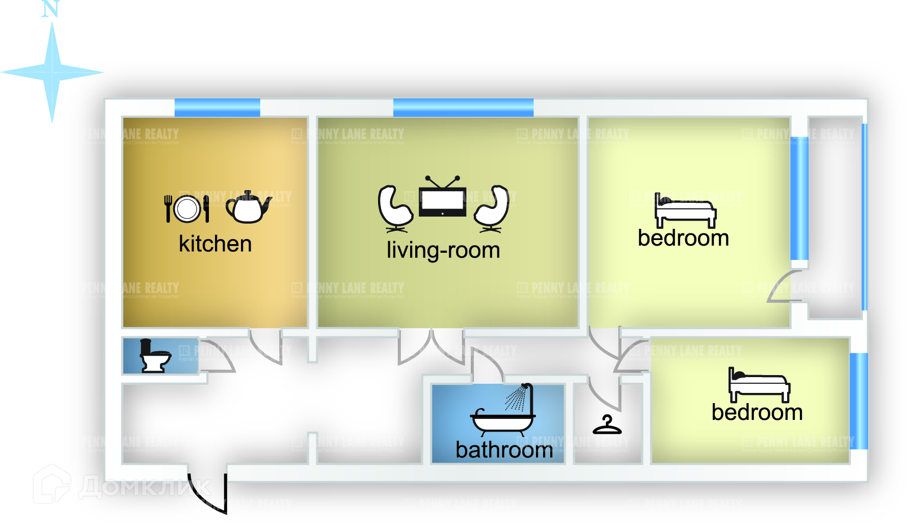 Планировка: гостиная, кухня, две спальни, 1,5 санузла, гардеробная, лоджия.