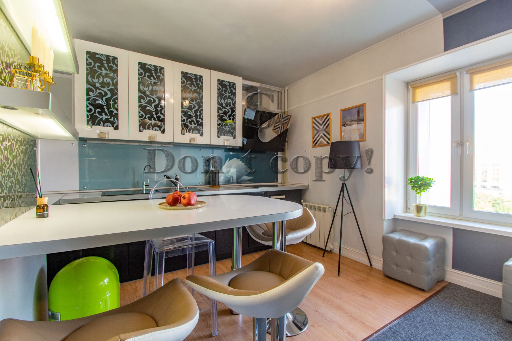 В квартире сделан свежий дизайнерский ремонт. Общая площадь квартиры: 56 м2. Площадь кухни: 9 м2. Жилая площадь: 36 м2. Сан. узел совмещённый в плитке (душевая кабина). Окна — стеклопакеты (тихий двор). Застеклённая лоджия. На полу — паркетная доска, плитка. В каждой комнате установлены кондиционеры. Вся мебель и бытовая техника (включая посудомоечную машину) новая, для комфортного проживания.
