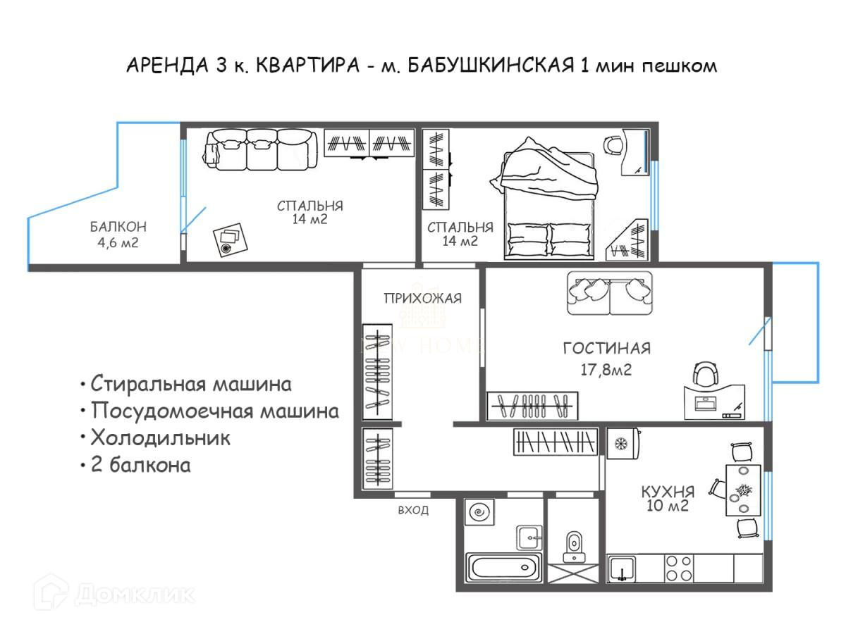 АРЕНДА 3 к. КВАРТИРЫ - м. БАБУШКИНСКАЯ 1 мин пешком