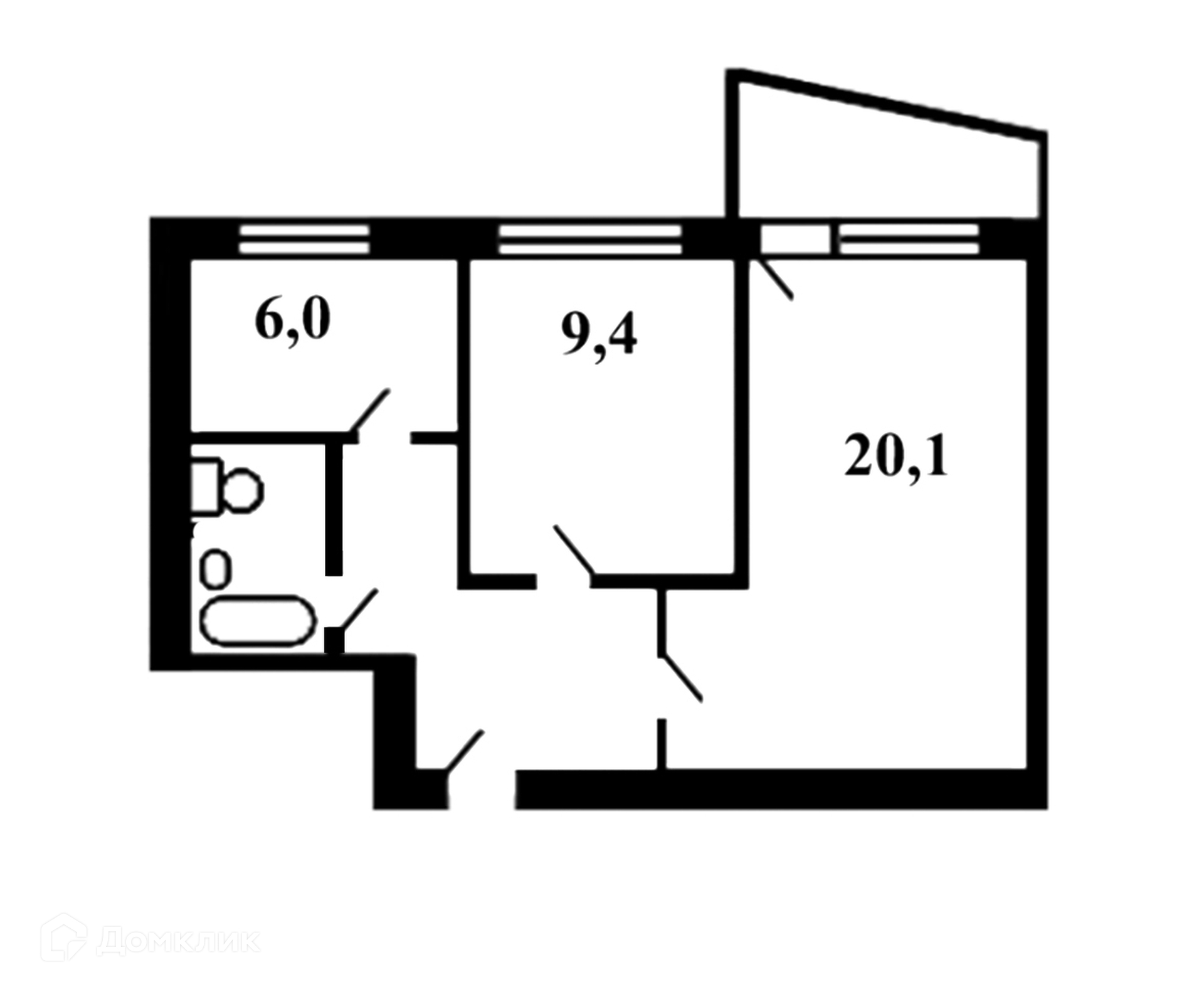 Жилая площадь 29.5 м2