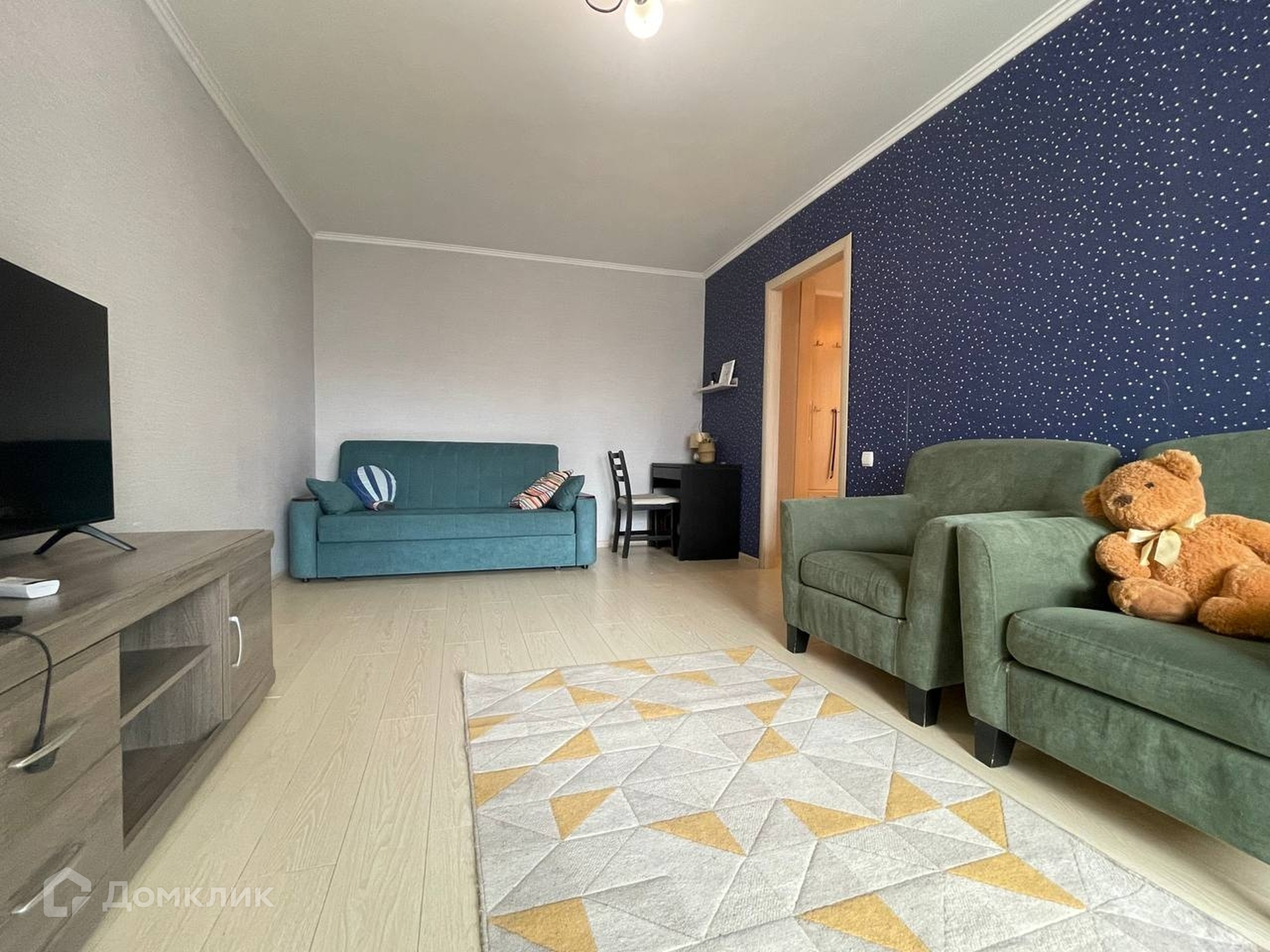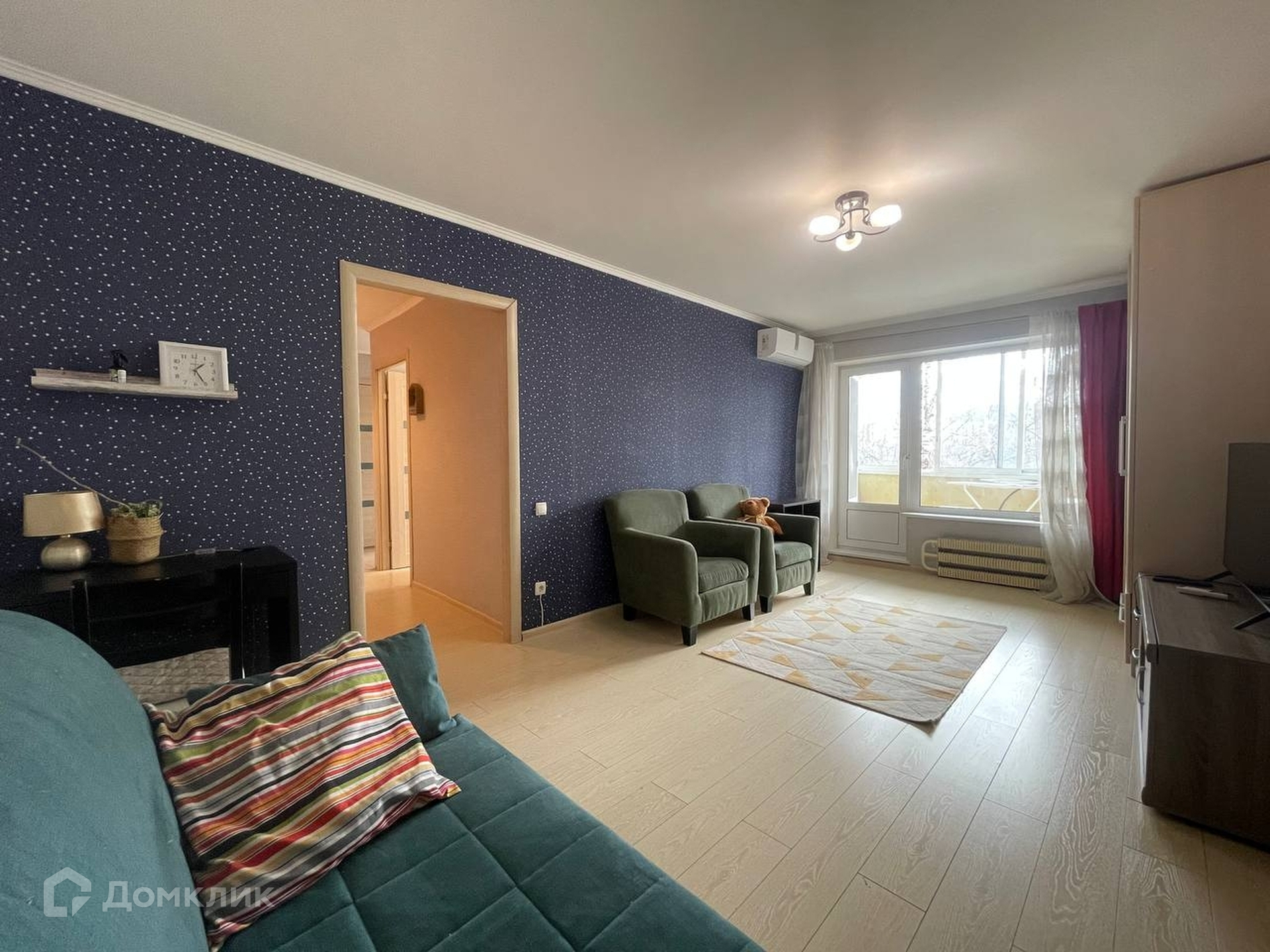 Общая площадь 45.6 кв. м, две изолированные комнаты, застекленный балкон, совмещенный санузел. Чистый подъезд, есть лифт. Можно сразу заселяться, в квартире есть все необходимое для жизни:  кухня со встроенной техникой, спальные места, шкафы для хранения вещей.