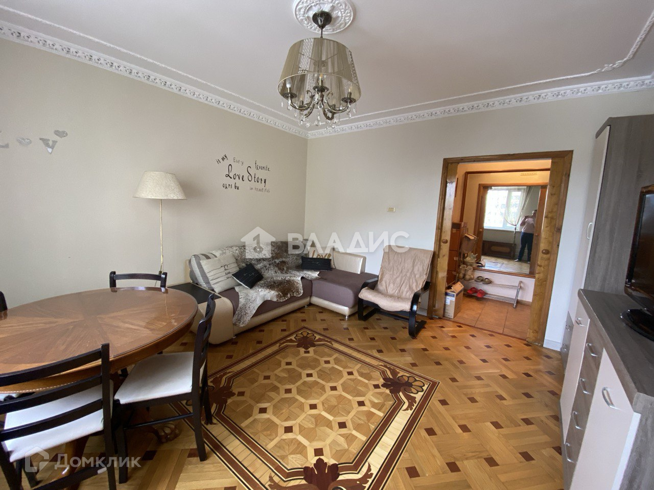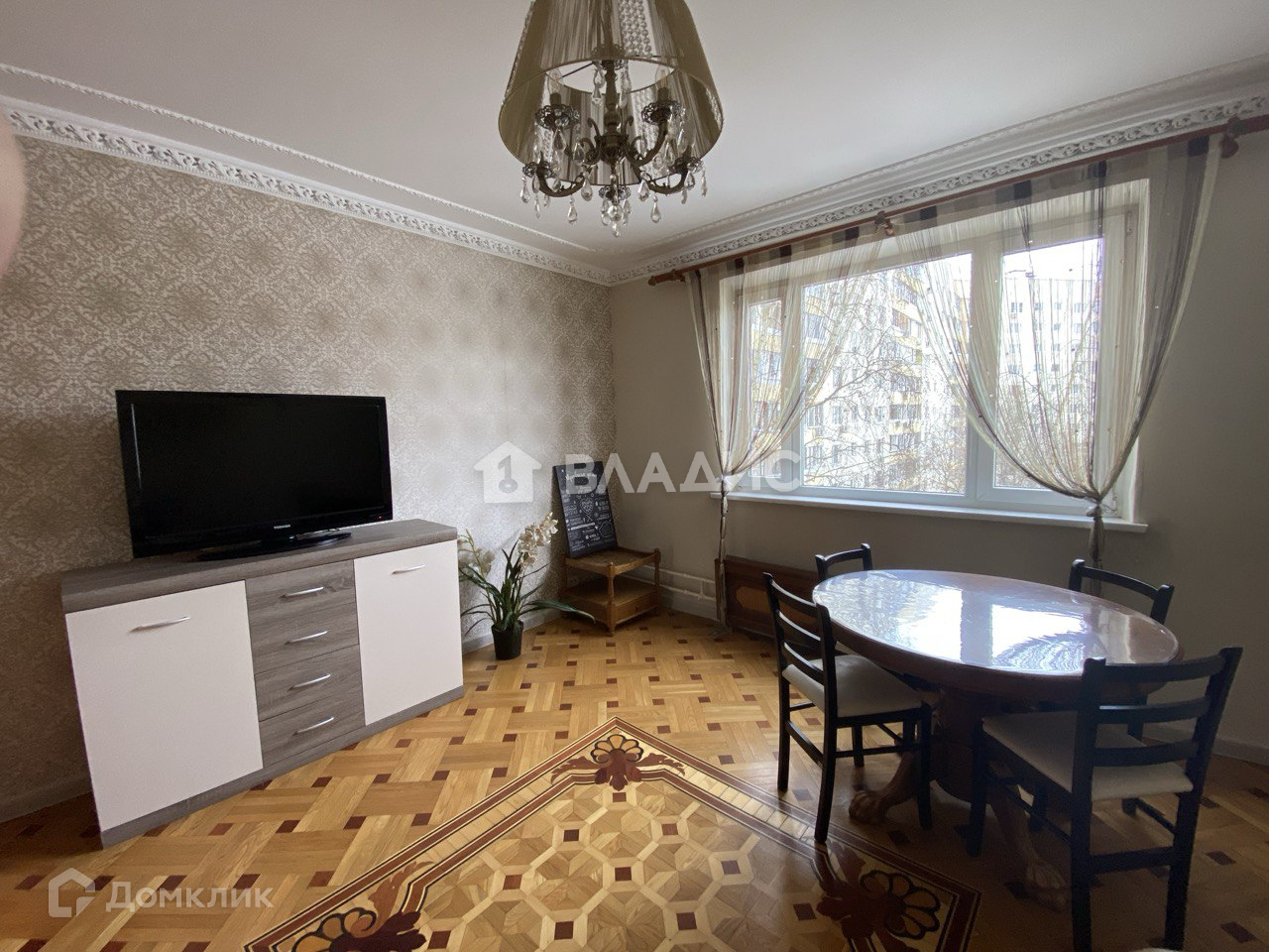 Есть вся необходимая мебель и техника. Полы - дубовый наборный паркет во всех комнатах.