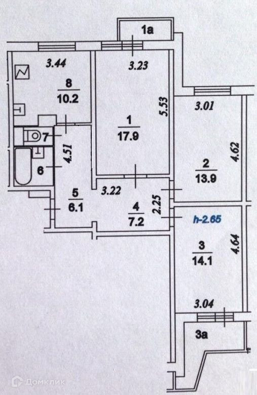 Жилая площадь 46.2 м2