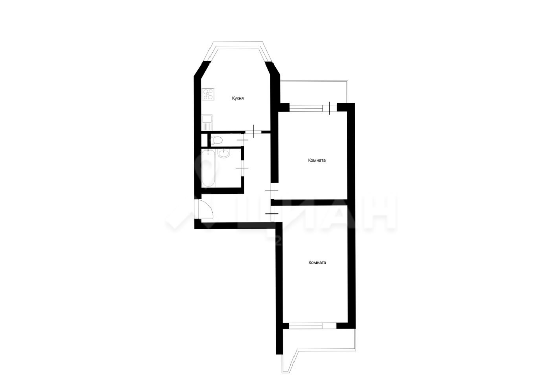 Квартира "Распашонка" две изолированные комнаты выходящие на разные стороны дома, в каждой комнате есть застекленная лоджии.