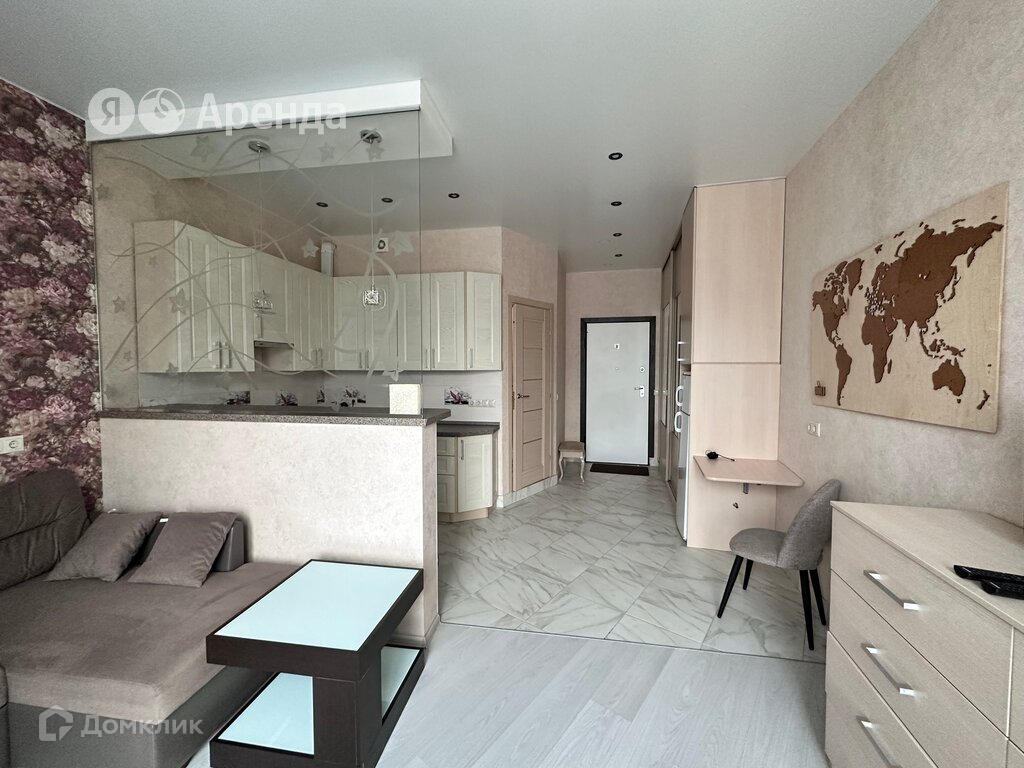 Сдаётся студия площадью 29 кв.м. с евроремонтом на 22 этаже в 25-этажном доме. Из техники есть: