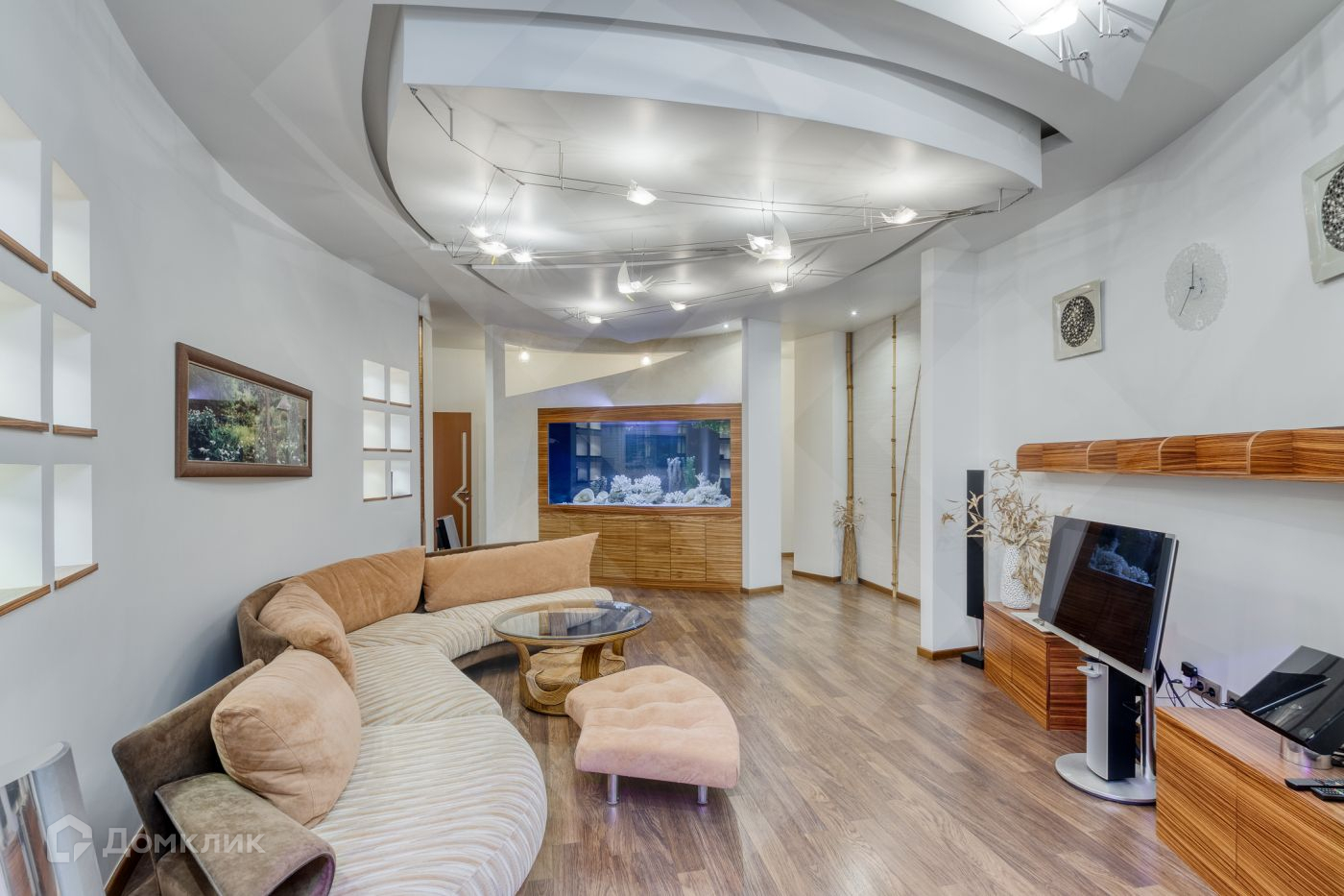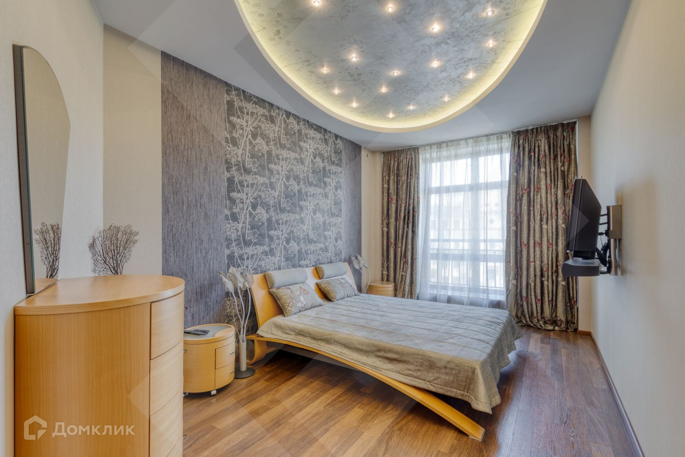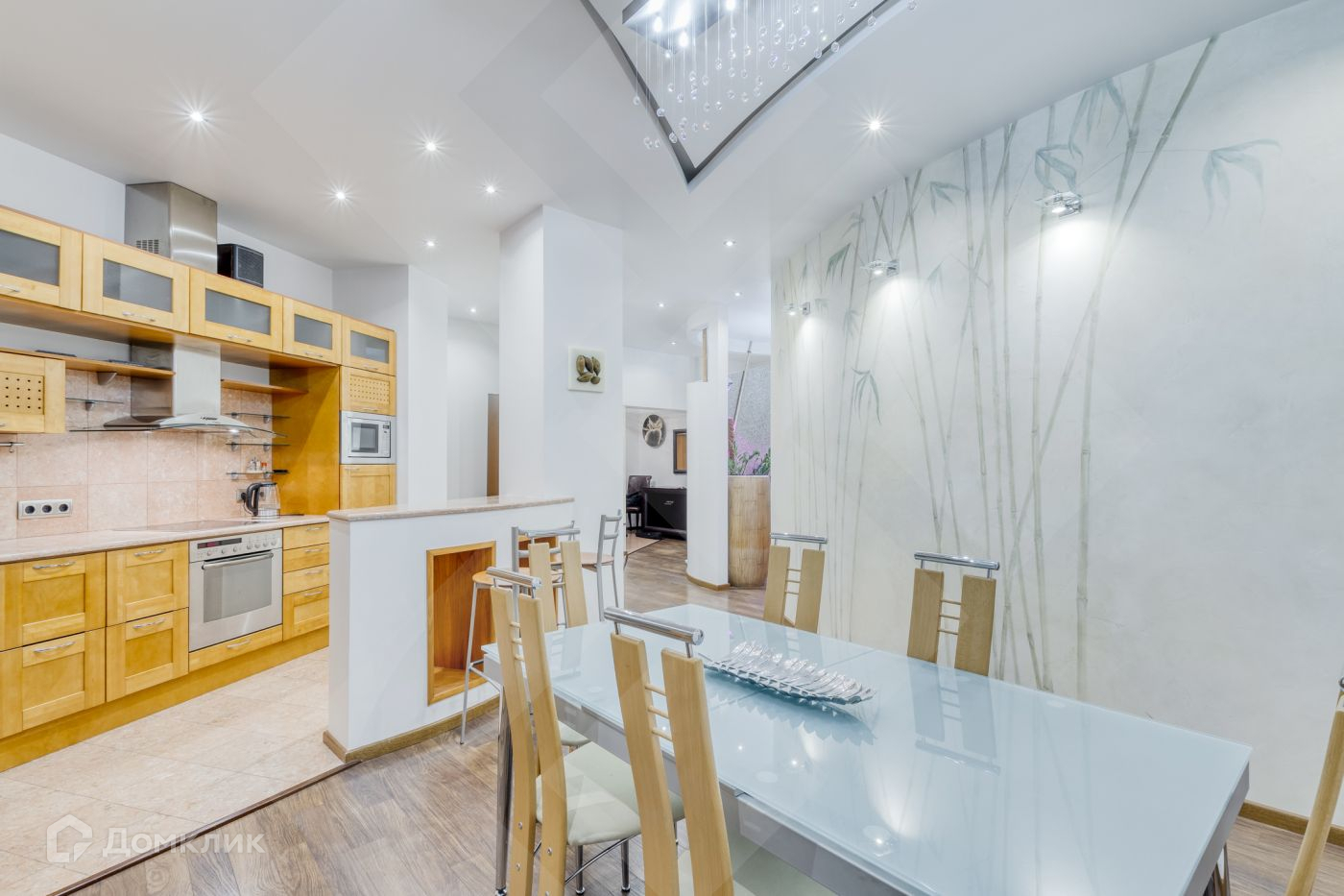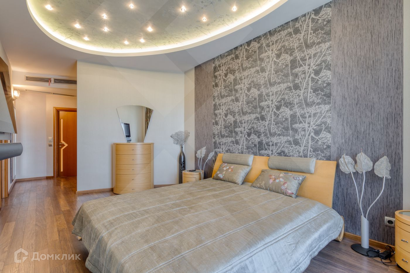 Квартира полностью оборудована мебелью и встроенной техникой. Она также оснащена интернетом, приточно-вытяжной вентиляцией, кондиционированием и системой теплых полов. Общая площадь квартиры составляет 200 квадратных метров.