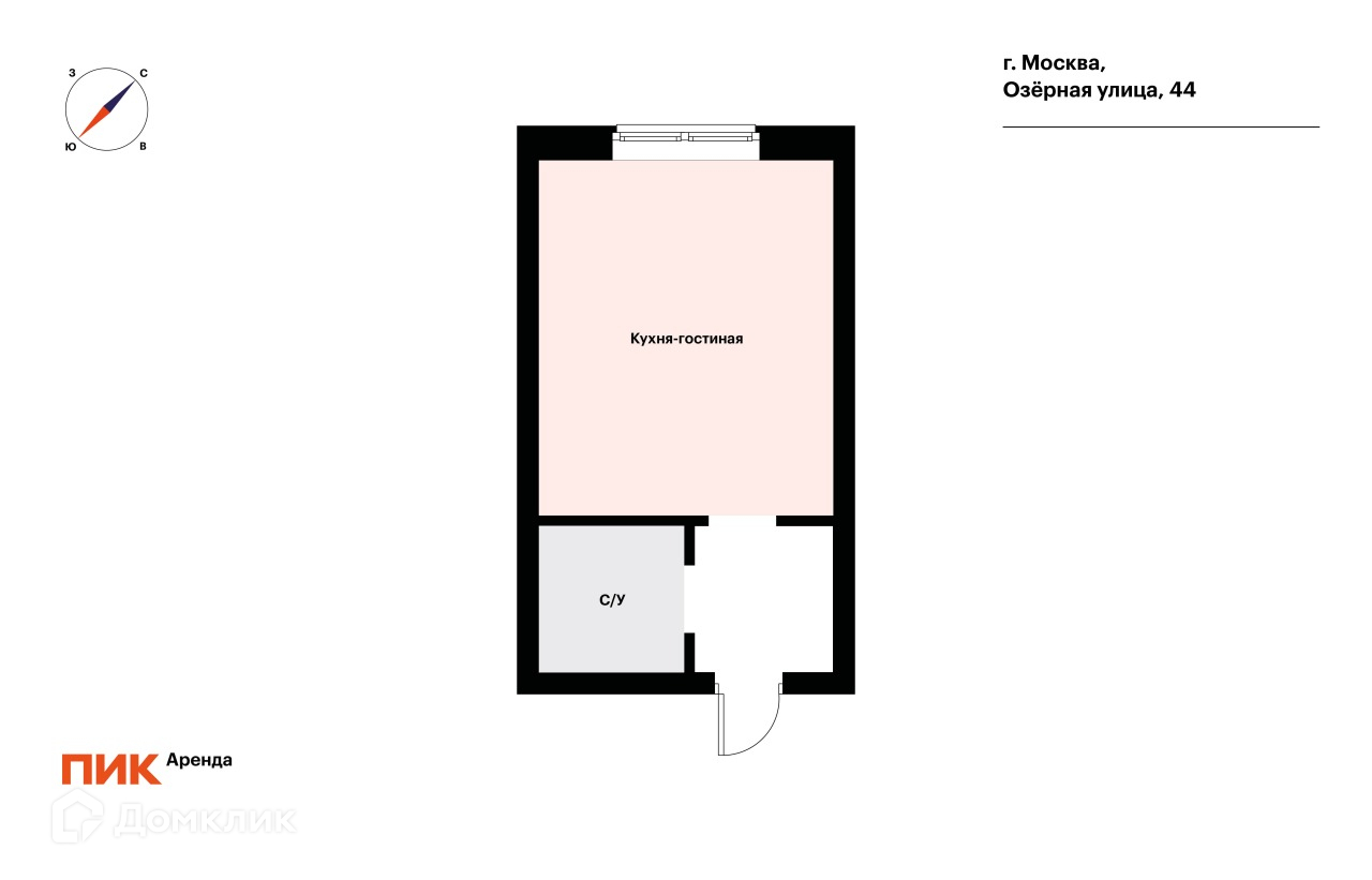 1-комнатная квартира, 19.8 м2, в аренду на длительный срок в Москве, Озёрная улица, 44