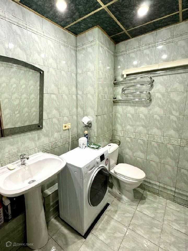 - Ванна и санузел совмещенные, здесь также стоит стиральная машина и есть настенная сушилка для белья