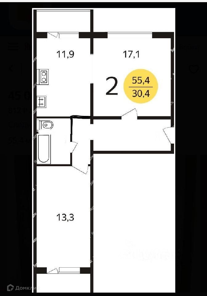 Общая площадь 55 м2