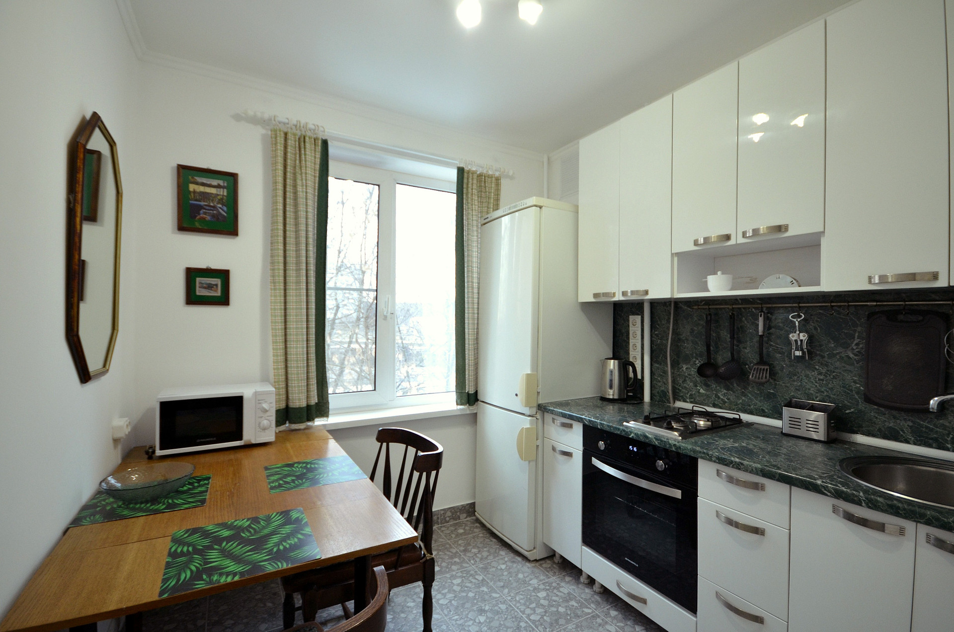 В квартире выполнен свежий качественный ремонт, полностью укомплектована всей необходимой для проживания хорошей мебелью и бытовой техникой. Имеется балкон (не застеклен).