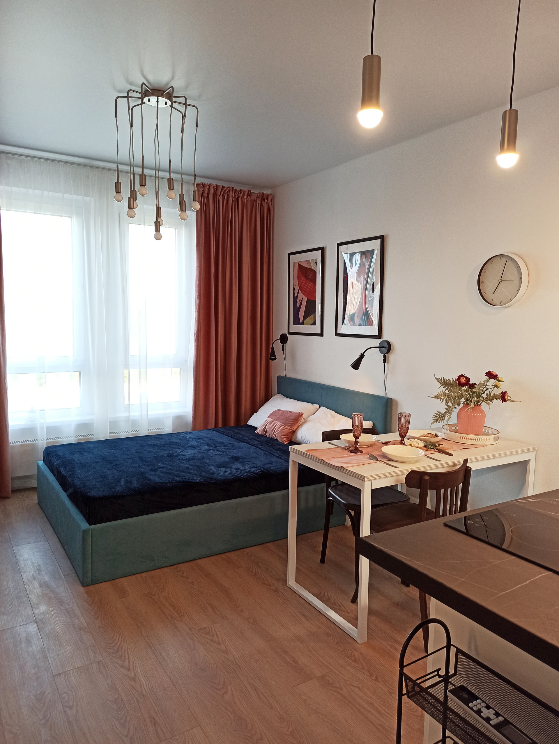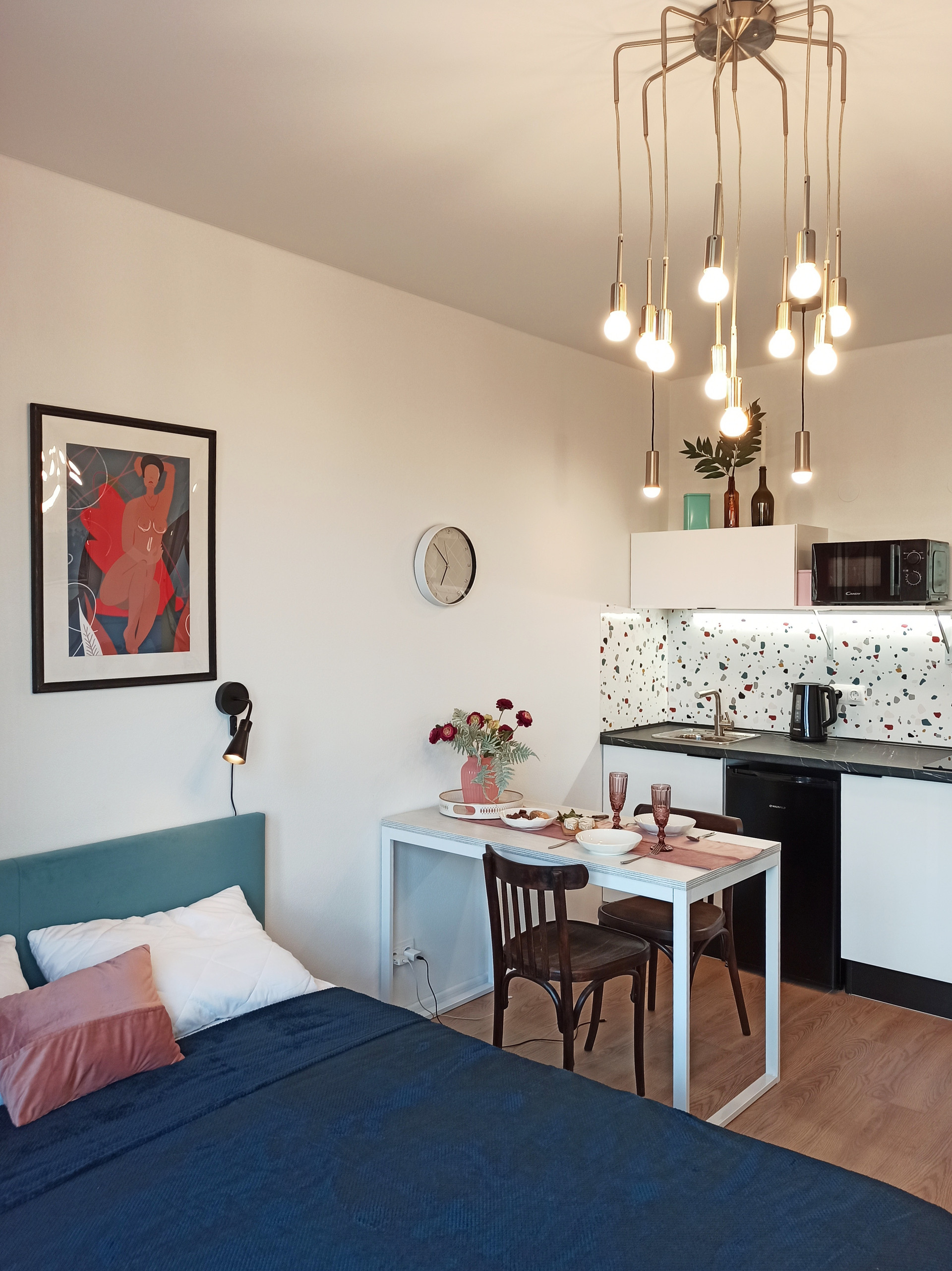- Удобный обеденный стол со стульями.