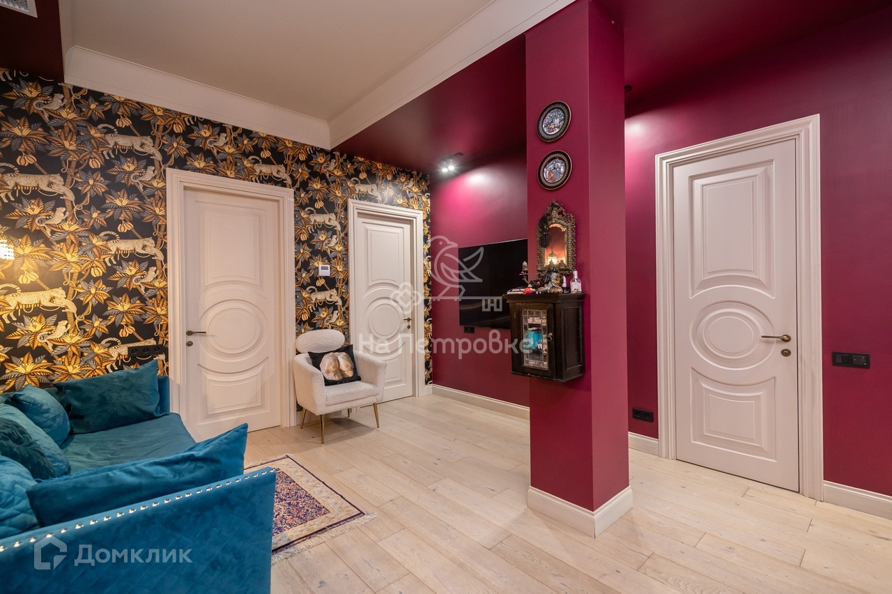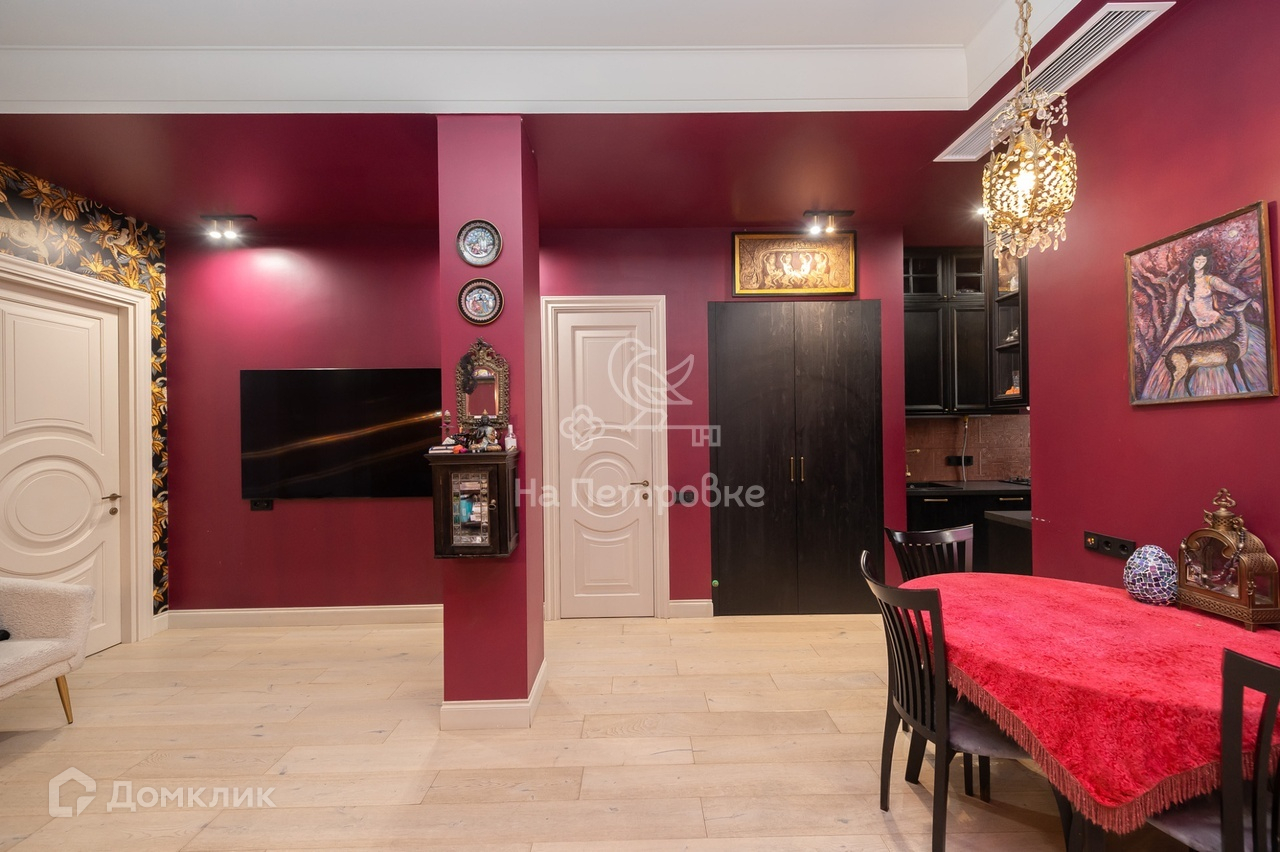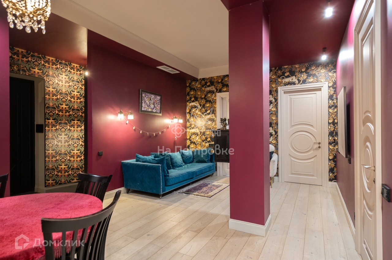 Планировка: гостиная, кухня-столовая, мастер-спальня с ванной комнатой и вместительной гардеробной, вторая спальня с гардеробной, третья спальня с гардеробной, гостевой санузел, холл-прихожая. Квартира никогда не сдавалась. Во дворе парковка.