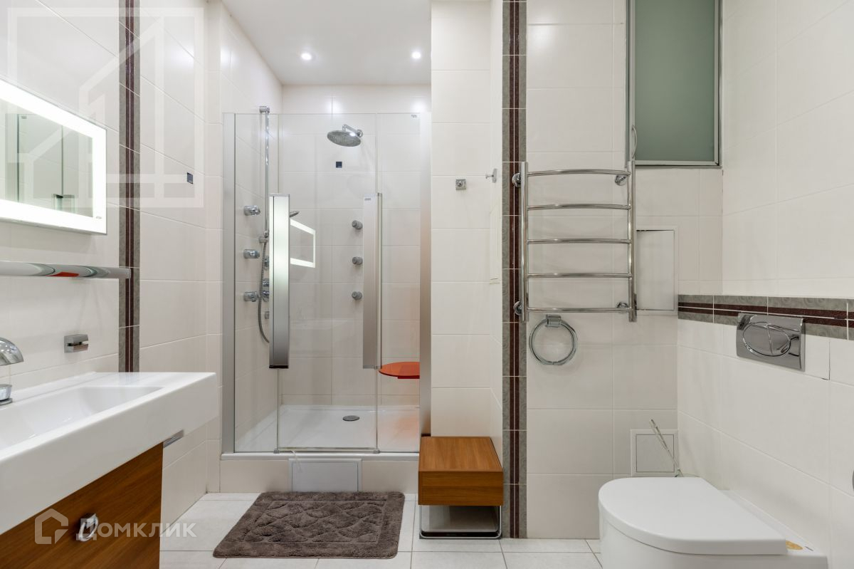 Планировка: объединённое пространство кухни и гостиной с выходом на застеклённую лоджию, три спальни, гардеробная, три совмещенных санузла с ванной и душевой кабиной, кабинетная неизолированная зона. Окна большие, на две стороны. Евроремонт в современном стиле. Квартира меблирована, укомплектована необходимой бытовой техникой.