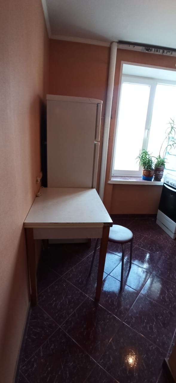 на полу в комнате и коридоре – паркет, санузел и кухня – плитка; комната 10 кв.метров (кровать, кресло, стол, стул), кухня 6 кв.метров в плитке со всей необходимой для проживания мебелью и техникой - холодильник, плита, вытяжка, электрический чайник, раздельный  санузел в плитке.