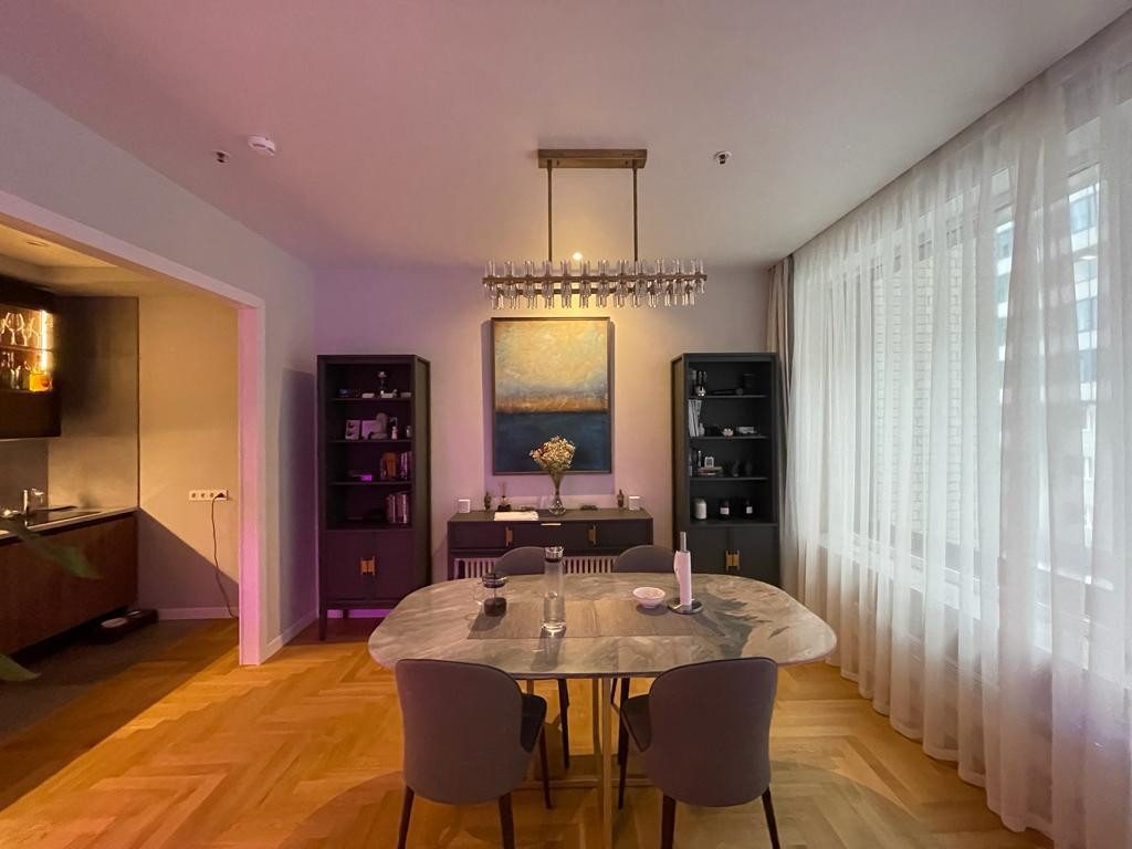 В апартаментах сделан дизайнерский качественный ремонт (для себя). Ранее апартамент не сдавался в аренду. Общая площадь: 70 м2, площадь комнат 18/15 кв. м. Сан. узел совмещенный в плитке с ванной - евро стандарт. Планировка смежно-изолированная. В апартаменте оборудована полноценная гардеробная комната. Горячая вода из центрального водоснабжения. Вся мебель и бытовая техника (включая посудомоечную машину, кондиционирование, приточно-вытяжную вентиляцию) в идеальном состоянии, для комфортного проживания.