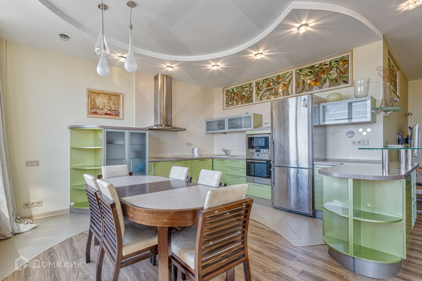 Функциональная планировка квартиры включает в себя: просторная кухня-гостиная, две спальни со своими гардеробными и ванной, гостевой СУ и постирочная, кладовая.