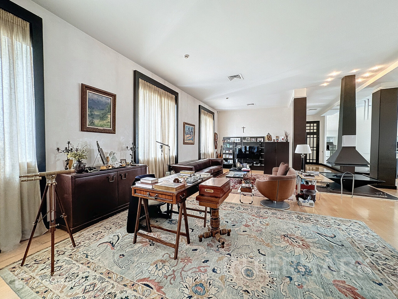 ID 46083 Шатилова Камилла Вашему вниманию предлагается просторная квартира площадью 300 м. В сталинском доме напротив парка усадьбы Усачёвых-Найдёновых. Квартира расположена на последнем 10 этаже. Интерьер оформлен в стиле модерн. Установлено два действующих камина, один в гостиной, второй в главной спальне. Высота потолков 3 метра. Виды на 2 стороны, на Садовое кольцо и на высотку на Котельнической набережной. Планировка: огромная гостиная-кухня около 100 м с обеденной зоной, 5 спален, 2 санузла, финская баня, отдельно выделена душевая. В зимнем саду спланирован тренажерный зал и просторная сауна. Квартира полностью укомплектована мебелью и техникой, мебель можно вывезти. Установлена посудомоечная и стиральная машина, кондиционер, бойлер, подогрев полов. Паркинг стихийный по дворе, за шлагбаумом. Полезный подарок на новоселье при заключении договора через нас! PLEASE FEEL FREE TO CONTACT US TO GET DETAILED INFORMATION OR TO SET UP A VIEWING! 24/7 HELP DESK SERVICE WITH ENGLISH -SPEAKING OPERATORS,Полностью меблированная, М/место в подземном паркинге, Посудомоечная машина, Стиральная машина, Сушильная машина, Бойлер, Камин, Спутниковое/кабельное телевидение, Охрана, Интернет, Балкон, Видовая квартира, Можно с детьми, Изолированная кухня, Европланировка, Сплит-система, Гардеробная, Лифт, Ремонт - дизайнерский, Мебель в комнатах, Мебель на кухне, Телефон, Телевизор, Окна на улицу, Окна во двор