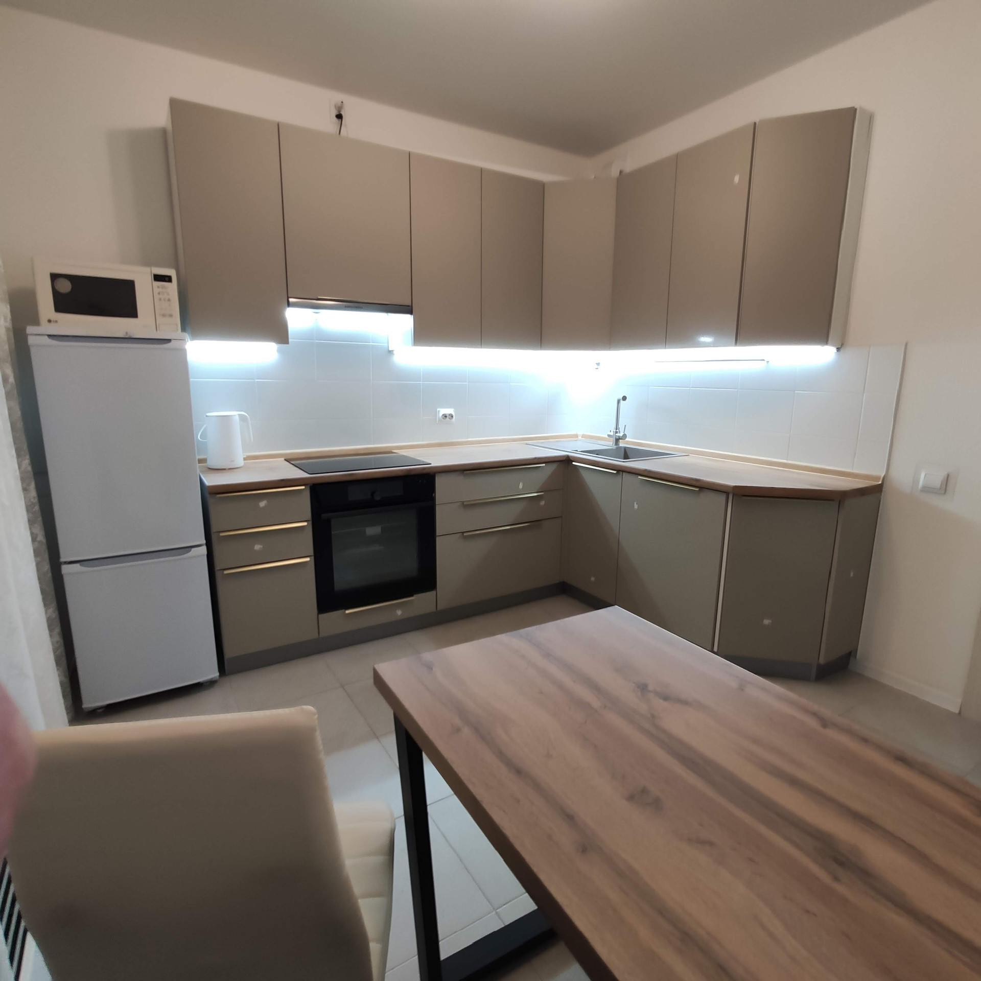 Монолитный железобетонный дом с подземным паркингом и наземной автостоянкой на берегу озера, рядом с Метро Зюзино. В шаговой доступности торговые центры, магазины, больница, кафе и рестораны, фитнес-центры, салоны красоты и бытовых услуг, В доме мусоропровод. Есть машиноместо в подземном паркинге( не входит в стоимость аренды и может быть сдано за дополнительную плату). Квартира новая и полностью оборудована. Установлена модульная гардеробная(ее можно изменять под свои потребности хранения). Вместительный встроенный шкаф в прихожей. В квартире установлен широкий раскладной диван с независимыми пружинами. Имеется раскладное кресло-кровать, раскладной стол, стулья, комод. Установлен 55 дюймовый 4к телевизор с приставкой  KION, высокоскоростной интернет 500 Mbps, wi-fi. Кухня полностью оборудована. Индукционная варочная поверхность с 2 мостами и различными функциями и режимами. Духовой шкаф с множеством программ, возможностью приготовления на пару и с термощупом. Посудомоечная машина с тремя корзинами  на 14 комплектов посуды с возможностью половинной загрузки, быстрых режимов мойки, оповещением с помощью луча на полу. Многорежимная вытяжка, холодильник, микроволновая печь,электрический чайник. Большая каменная мойка, кран мойки позволяет подключить фильтр очистки воды. Светодиодная подсветка рабочих зон кухни. Имеется посуда и столовые принадлежности. Есть гладильная доска и утюг, пылесос, фен. В жилой комнате уложен ламинат, в остальной квартире плитка. Лоджия застеклена. На окнах установлены антимоскитные и антипылевая сетки. Водоснобжение центральное.
