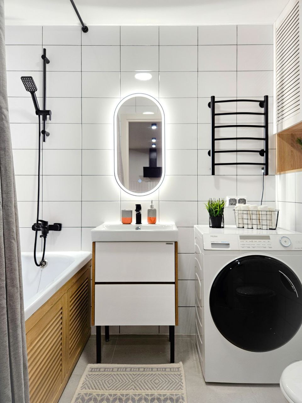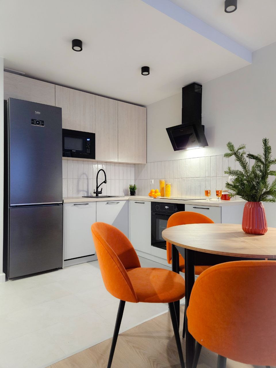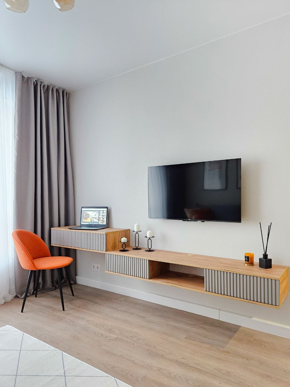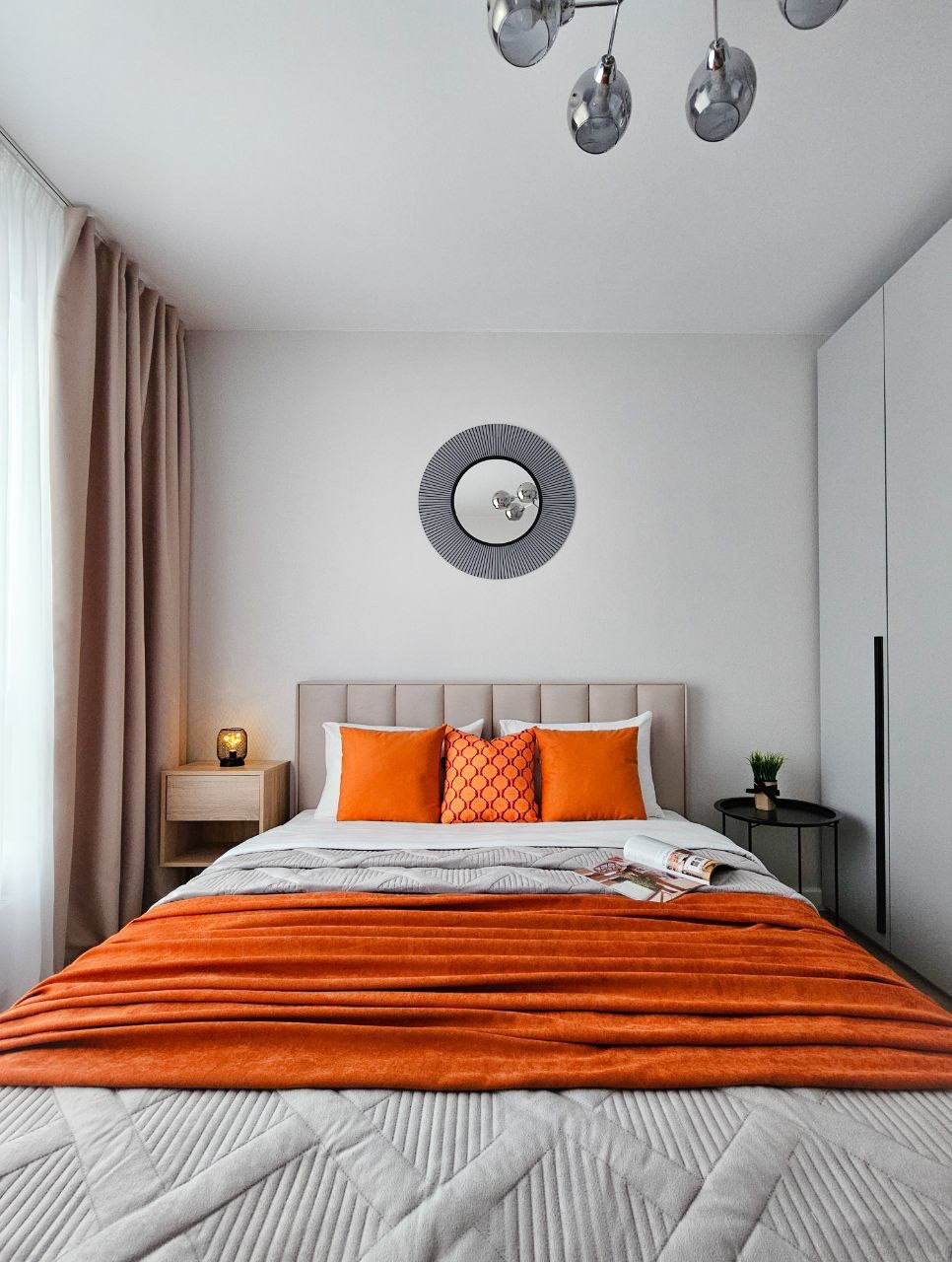 Квартира полностью оснащена техникой для комфортной жизни: кондиционер в каждой комнате, холодильник, посудомочная машина, стиральная машина с сушкой, духовка, варочная панель, микроволновая печь, чайник, фильтр для воды и ТВ. Также предусмотрено большое количество мест для хранения вещей. В спальне большая двуспальная  кровать с ортопедическим матрасом и подъемным механизмом, в гостиной раскладной диван. Выделены рабочие зоны, как в спальне, так и в гостиной. Раздвижной кухонный стол, расчитан до 6 человек.