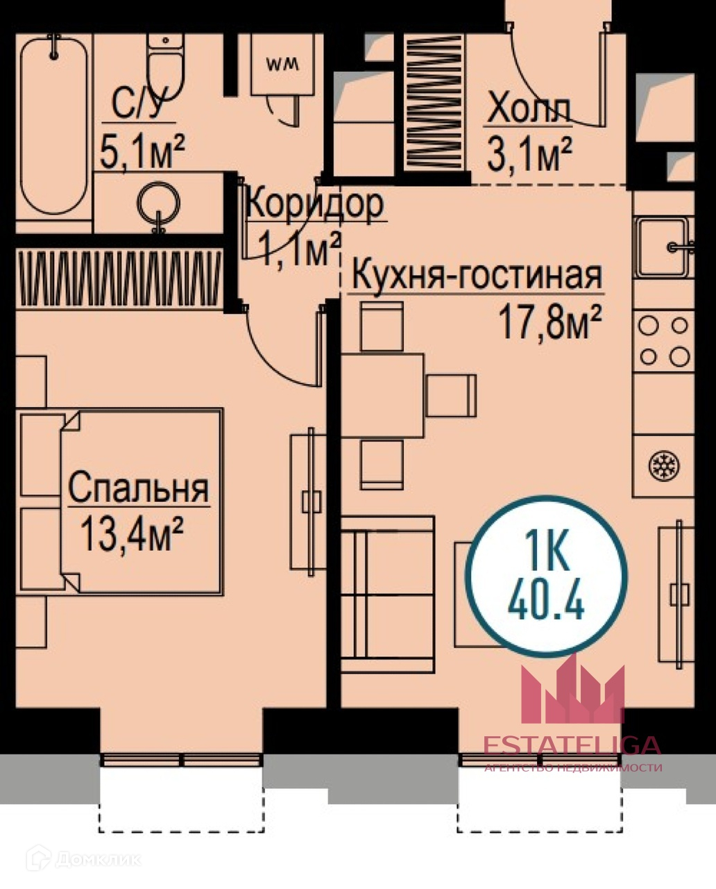 Общая площадь 40 м2