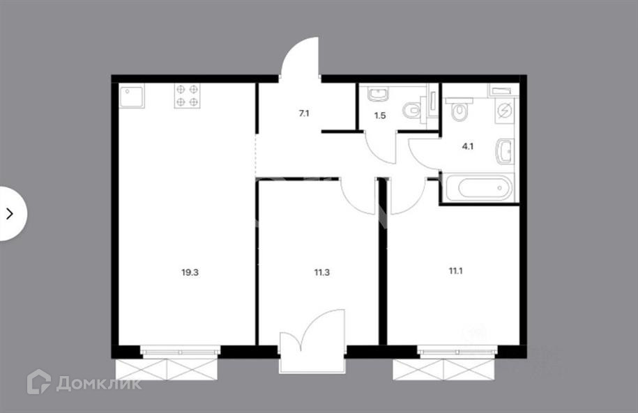 Общая площадь 54 м2