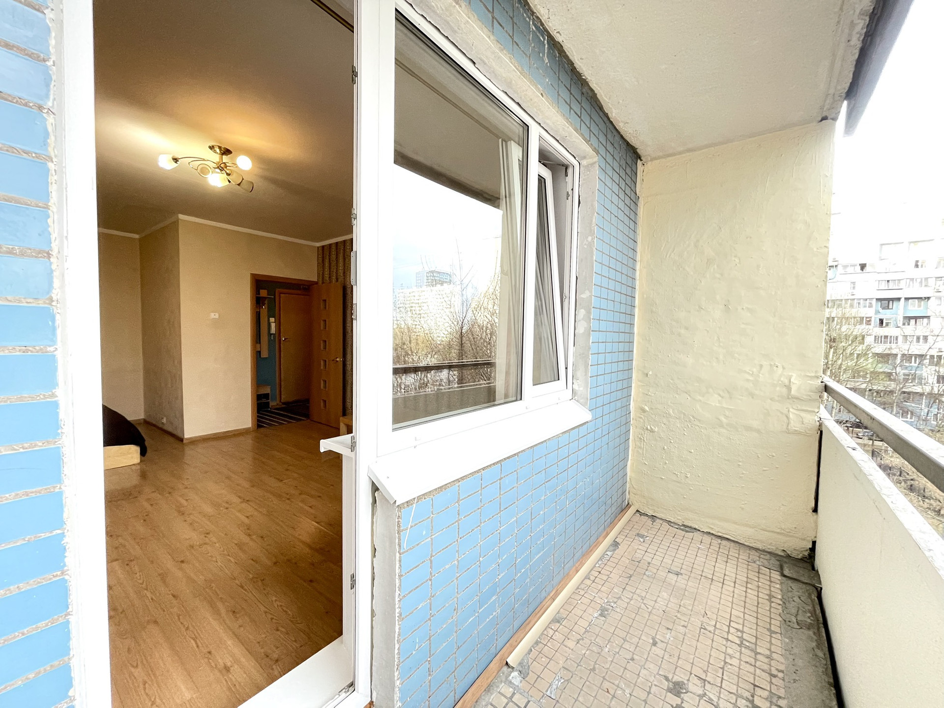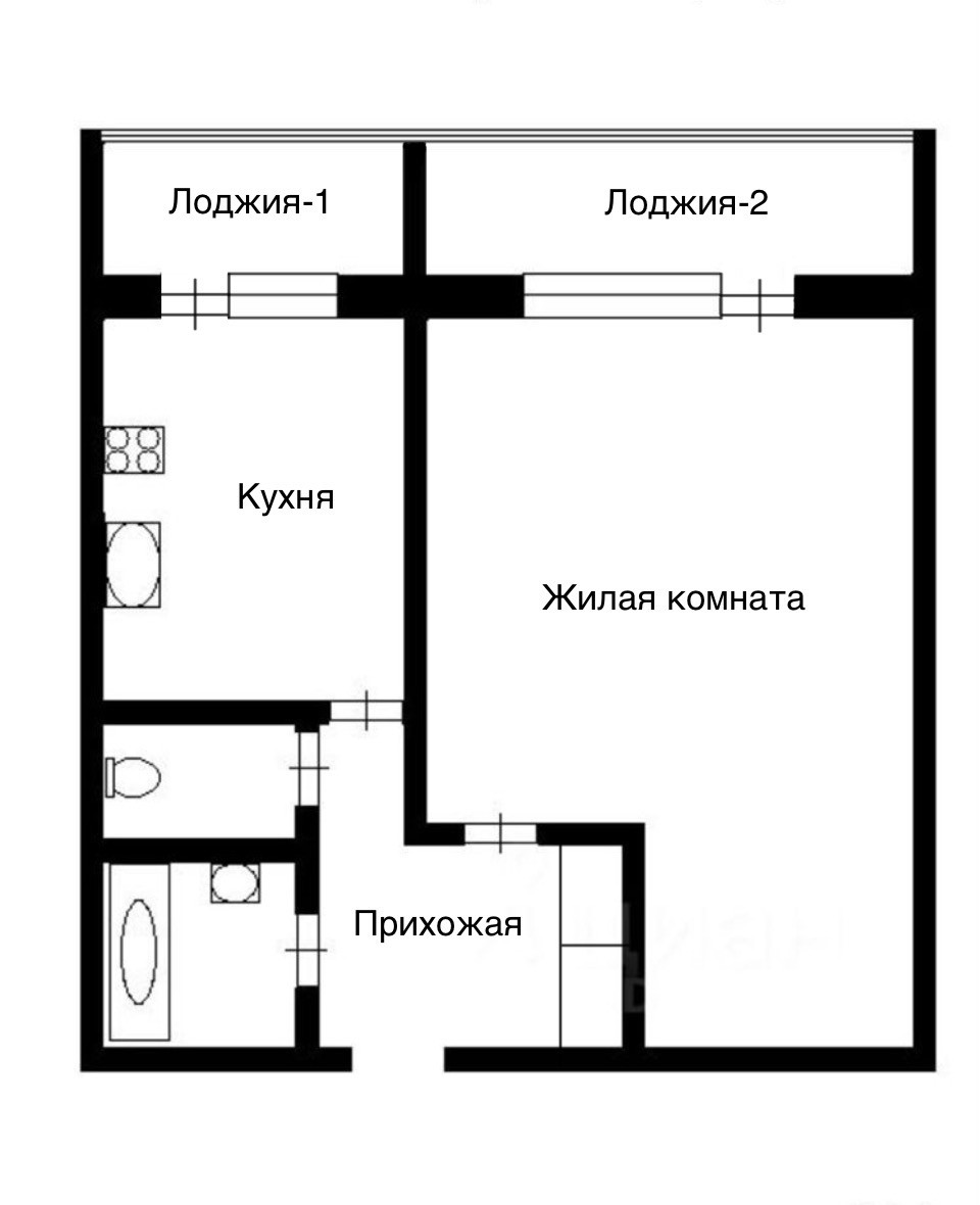 Общая площадь: 40 м² без учета лоджий; Комната: 21 м² + лоджия; Кухня: 9 м² + лоджия.