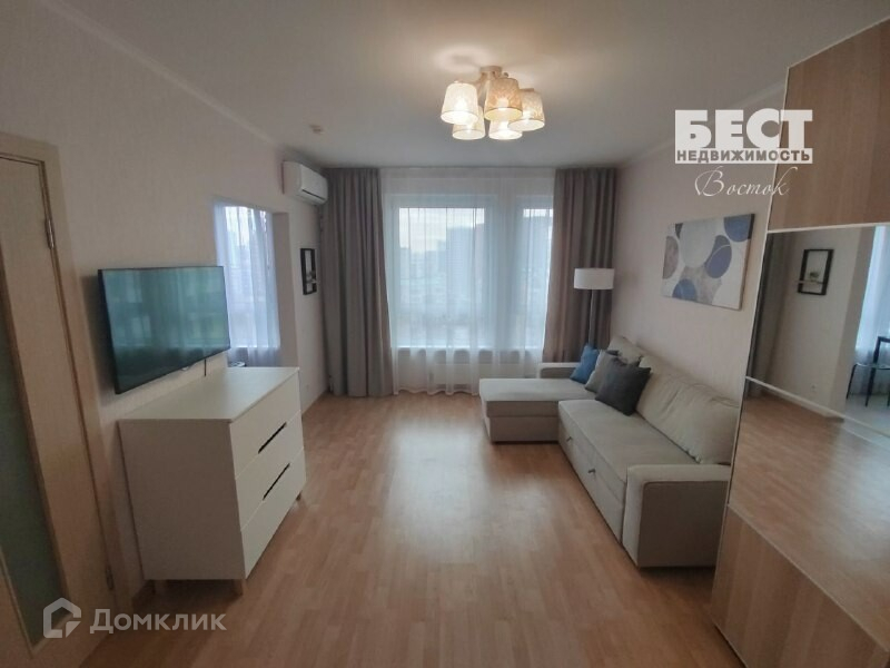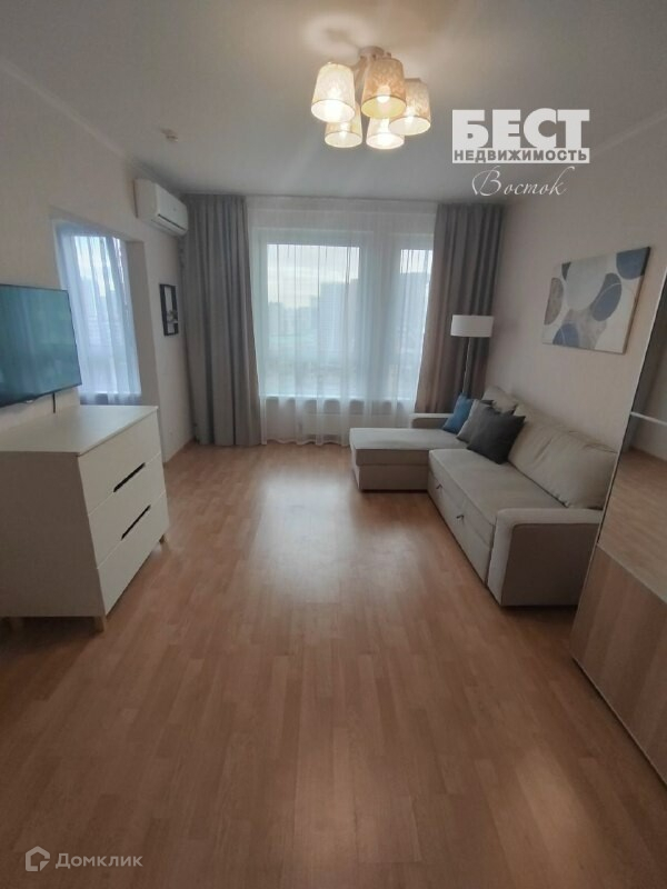 Квартира имеет современный ремонт, на полу ламинат. Санузел оборудован сантехникой от пика. В квартире также есть кондиционер, а потолок побелен. Показы квартиры проводятся по договоренности.