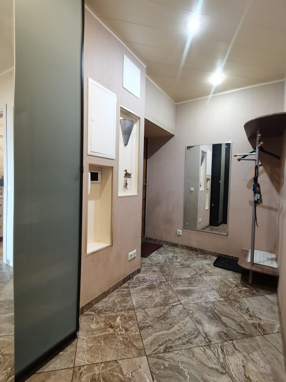 В прихожей -функциональный шкаф и вешалка для верхней одежды.