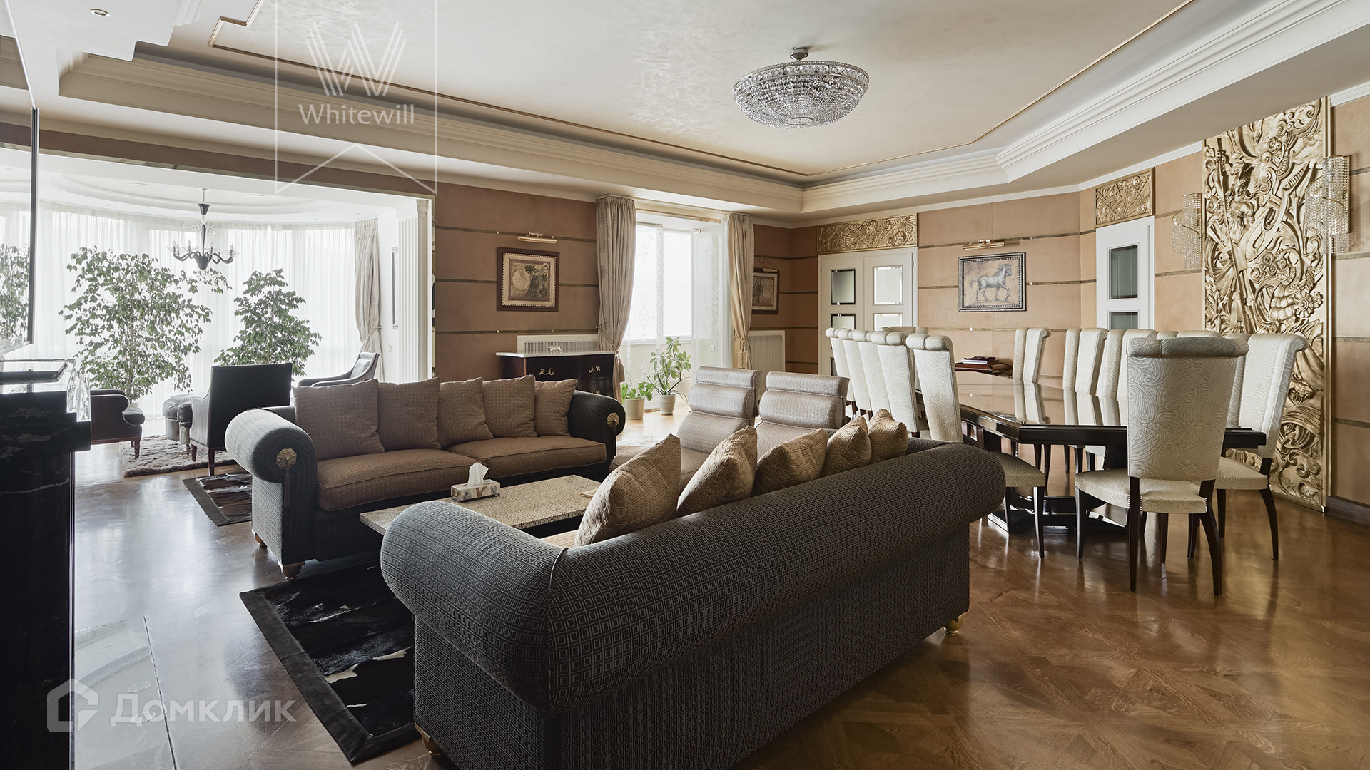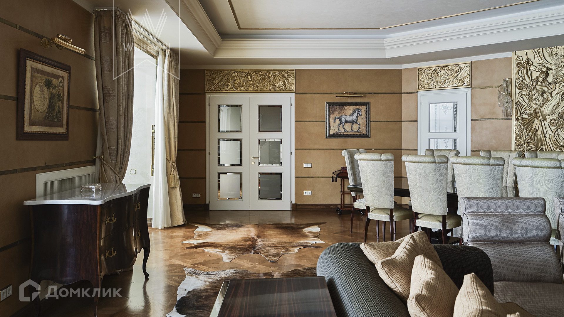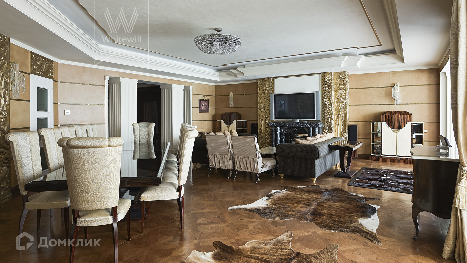 ID 1 880 Дизайнерская квартира площадью 330 м² в доме «Звенигородская, 16» на западе Москвы в окружении Суворовского парка. Выполнена премиальная отделка с использованием ценных пород дерева, натурального камня и кожи, интерьер украшен предметами искусства. Из окон открываются панорамные виды на парк.