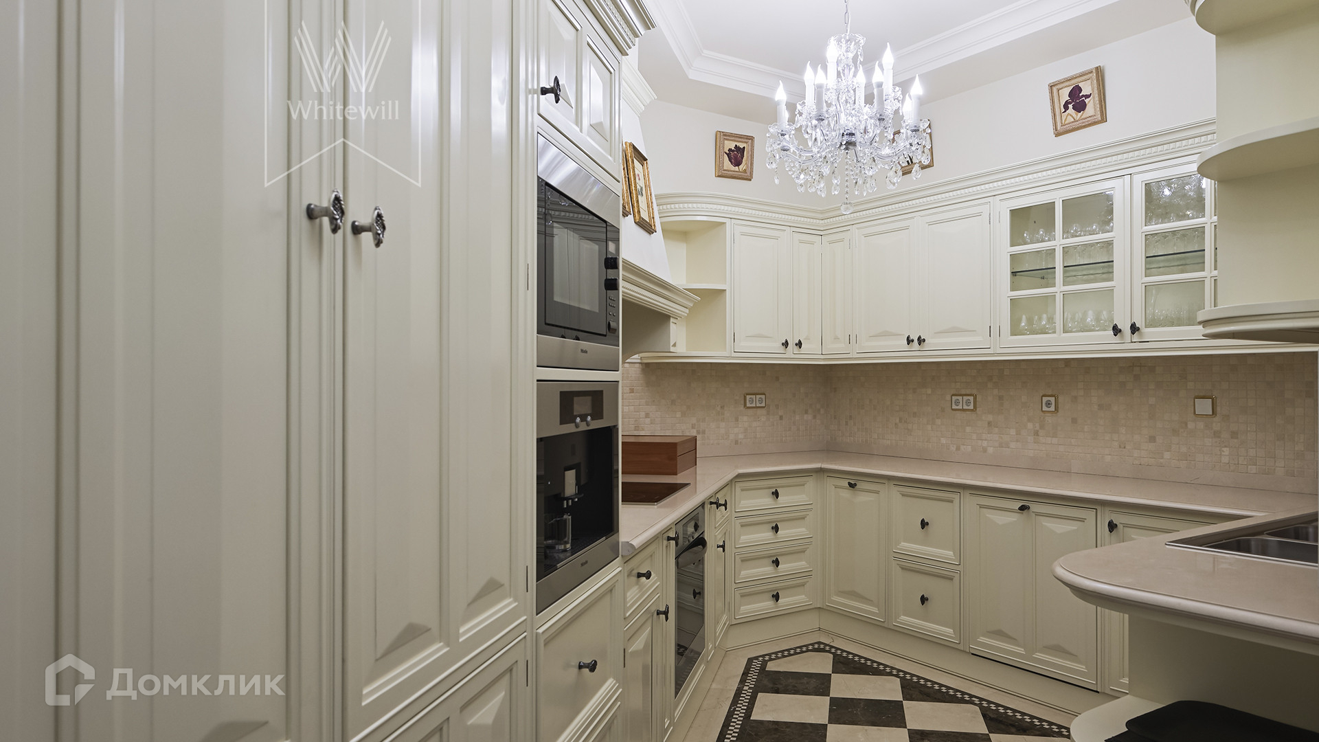Планировка: просторная гостиная с лаунж-зоной, 3 спальни, кабинет, кухня, 4 санузла, холл, зимний сад, балкон. Квартира полностью меблирована классической дизайнерской мебелью, вся мебель заказана в Италии. Кухня оснащена встроенной техникой Miele. Установлена система кондиционирования, стиральная и посудомоечная машина. Два места в паркинге входят в стоимость.