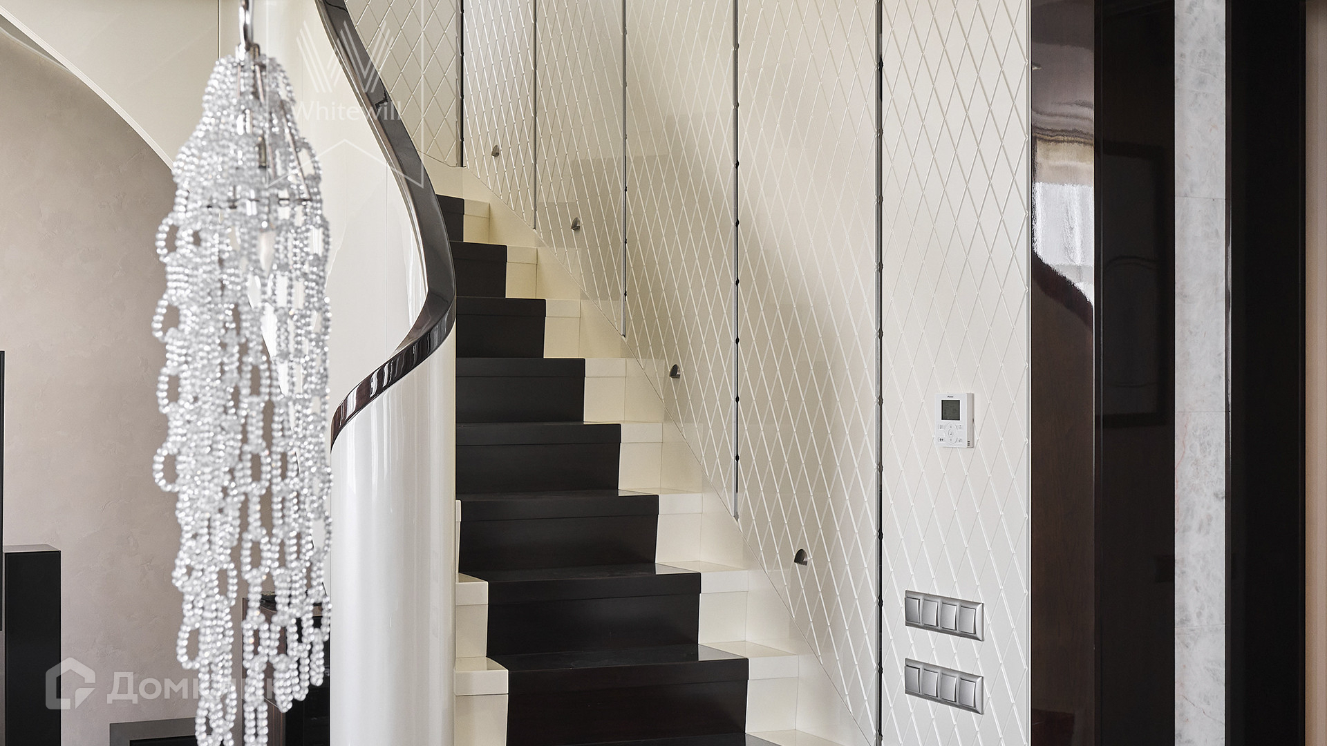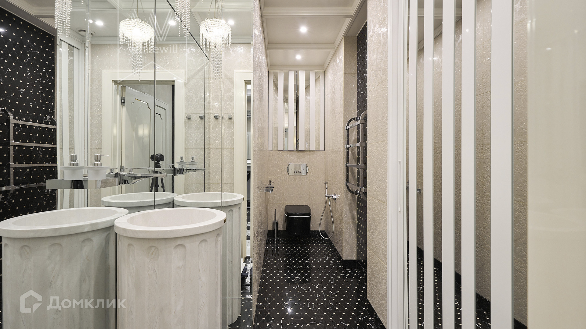 1-й этаж: гостиная, кухня-столовая,  спальня с гардеробной, детская спальня, гостевой санузел с бойлером, стиральной и сушильной машиной. 2-й этаж: мастер-спальня с большой гардеробной, своим санузлом с ванной и душем, кабинет. Всего в квартире 3 санузла, включая душ, ванную и биде. Установлена система кондиционирования, приточно-вытяжная вентиляция. Вдоль всей квартиры спланирована просторная лоджия. Дополнительно в наличии 3 машиноместа.