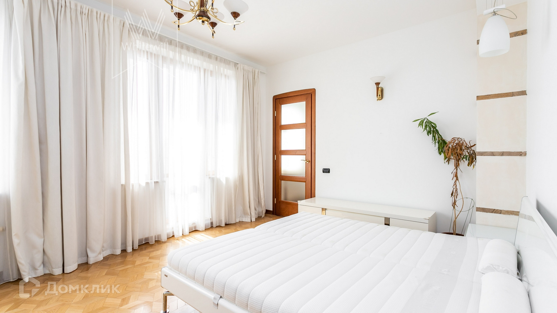 Планировка: три изолированных спальни, одна из которых со своей ванной комнатой с джакузи и душевой, и с выходом на остеклённый балкон, гостиная, постирочная, гостевой санузел с душевой. Квартира полностью укомплектована мягкой мебелью и бытовой техникой премиум-класса. Установлено несколько систем по раздаче свежего воздуха с фильтром, пять потолочных кондиционеров, встроенный пылесос в стенах по всей квартире, система очистки воды. В стоимость включено одно машиноместо в подземном паркинге. Охрана, видео наблюдение. В доме есть фитнес с бассейном.