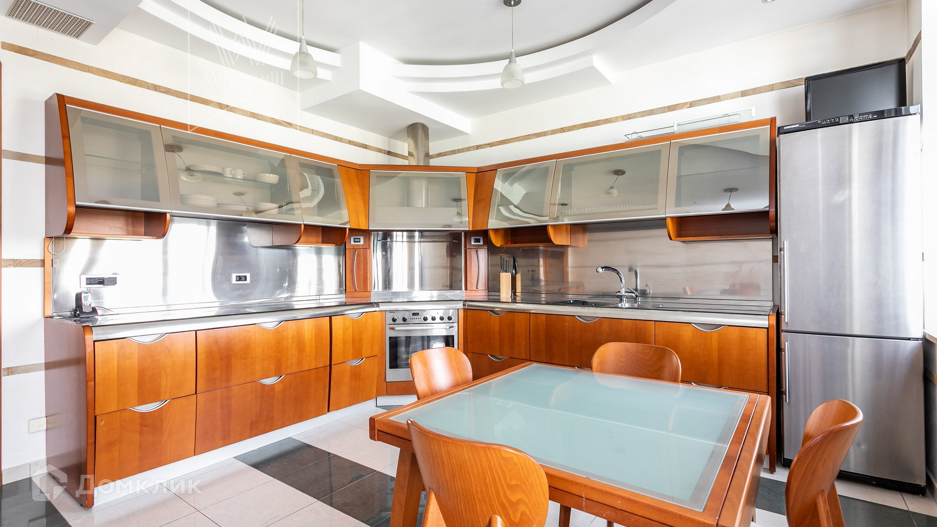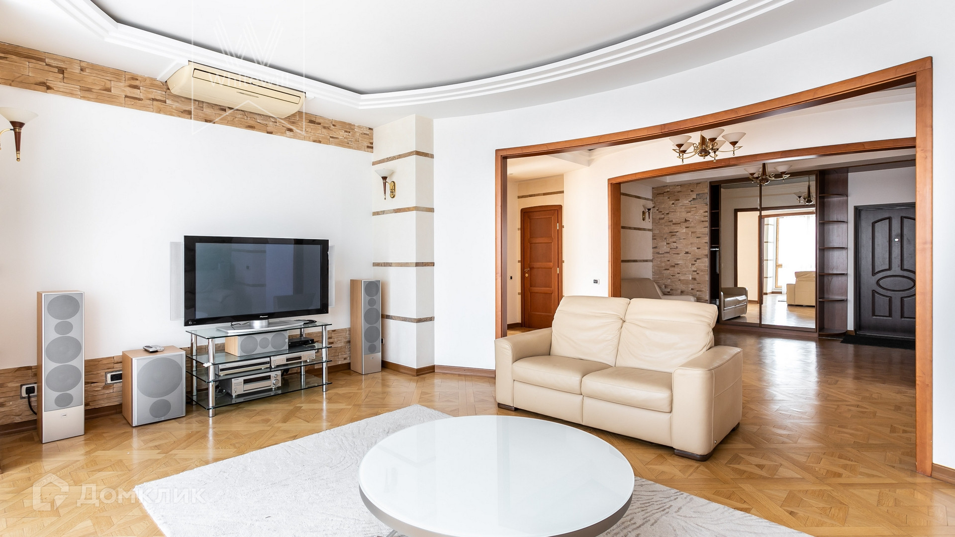 ID 275 Видовая квартира площадью 190 м² в доме на Бульварном кольце, в 10 минутах ходьбы от ЦУМ. Выполнен дизайнерский ремонт с использованием натурального дерева и камня. Интерьер оформлен в приятных светло-бежевых тонах. Стены покрыты мраморной крошкой, паркетный пол, в санузлах тёплые водяные полы. Панорамные окна в деревянных рамах в сочетании с высокими потолками наполняют пространство светом. Из окон открываются виды на 3 стороны света, на город в сторону неосталинской высотки в Оружейном переулке, Петровский собор и в тихий двор.