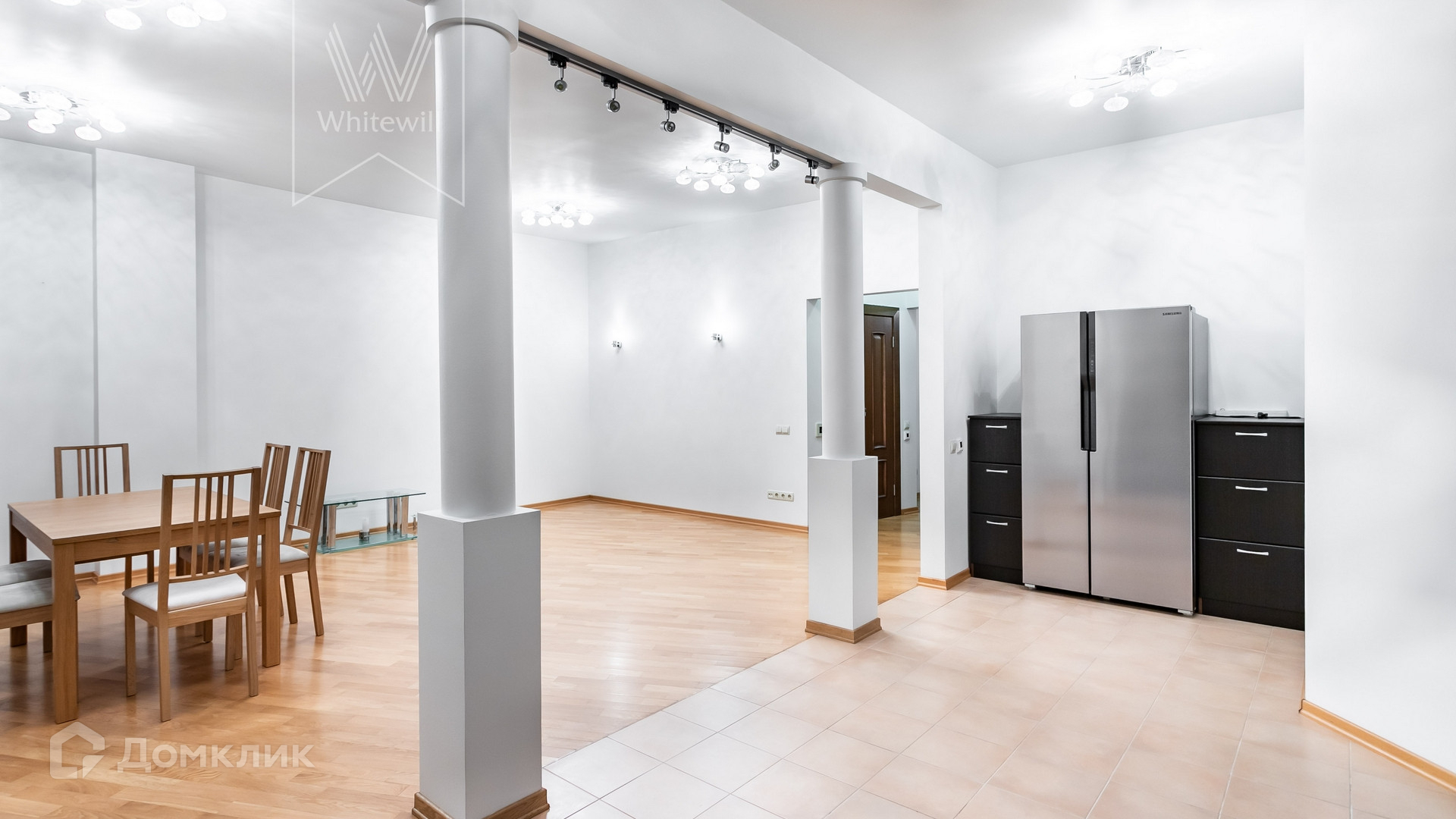 ID 191. С коллегами работаем 50/50. Квартира с 2-мя спальнями в клубном доме «Онегин» на Малой Полянке. Выполнен светлый ремонт в современном стиле. В отделке использовано натуральное дерево, на полу выложен паркет. Квартира частично меблирована, в гостиной столовая зона на 6 персон. Зона кухня выделена двумя колоннами, установлена бытовая техника Siemens, Samsung.