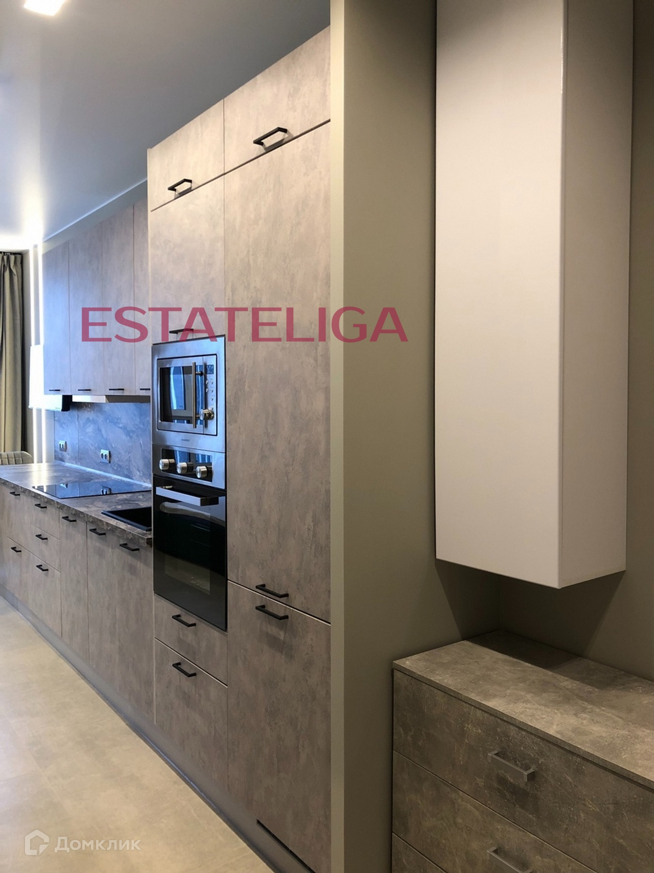 - Встроенный холодильник, духовой шкаф, микроволновая печь, посудомоечная машина, варочная панель, телевизор, кондиционер, стиральная машина