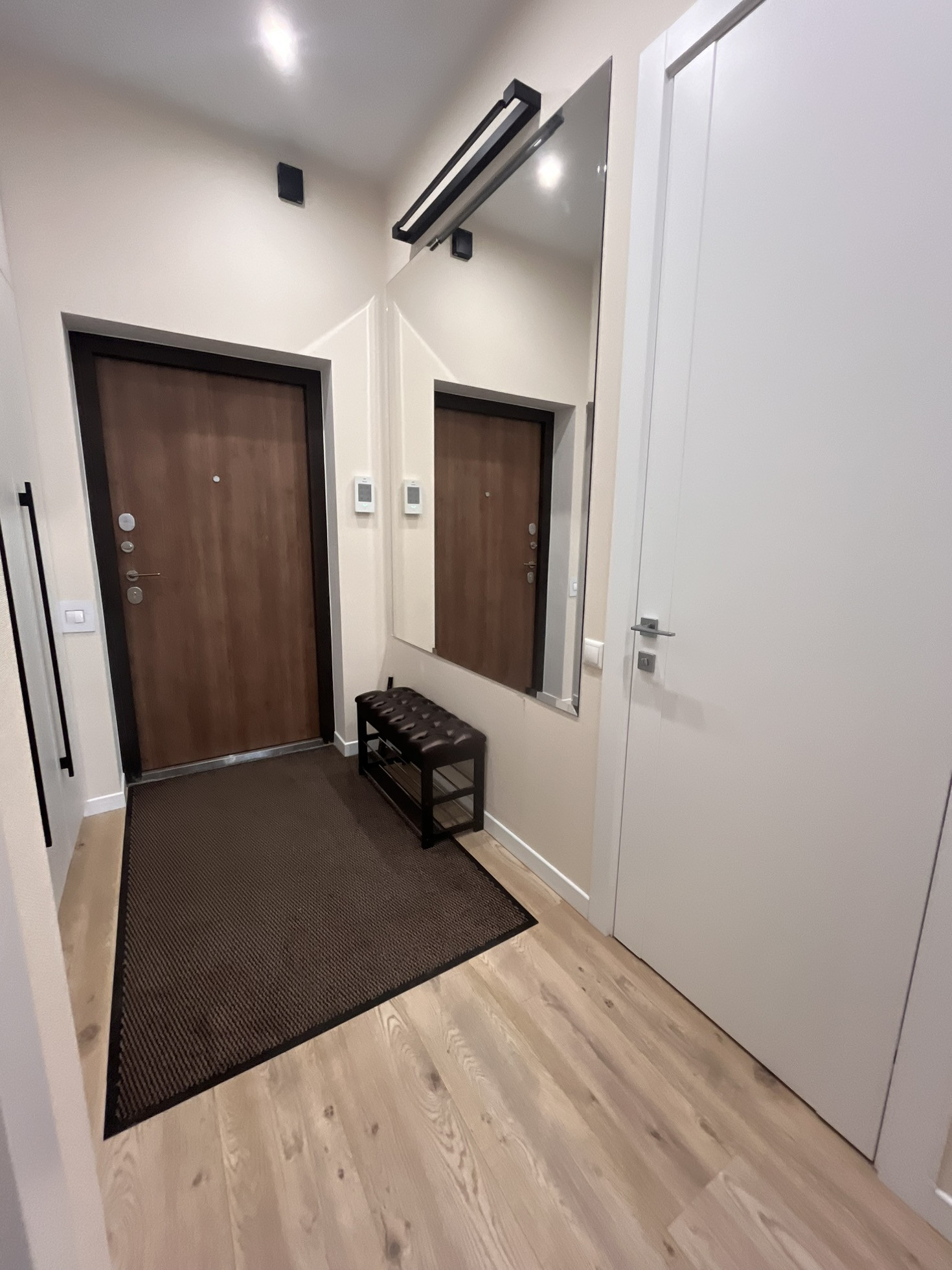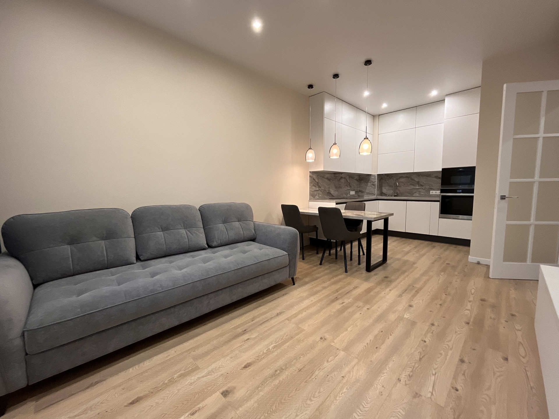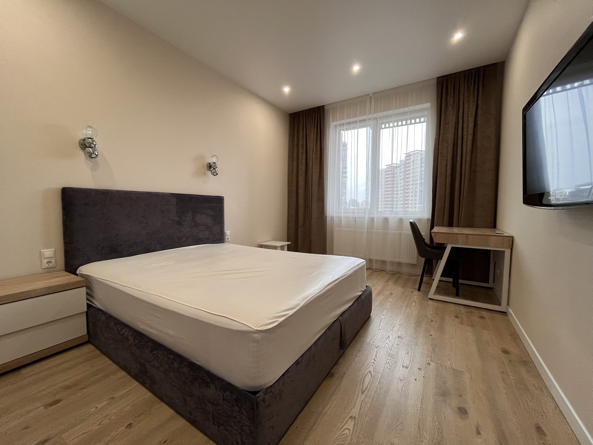 Квартира оснащена полностью всеми удобствами: варочная панель, духовой шкаф, микроволновая печь, посудомоечная машинка, вытяжка, 2 телевизора, 2 кондиционера, стиральная машинка, сушилка, теплый пол, датчики воды.