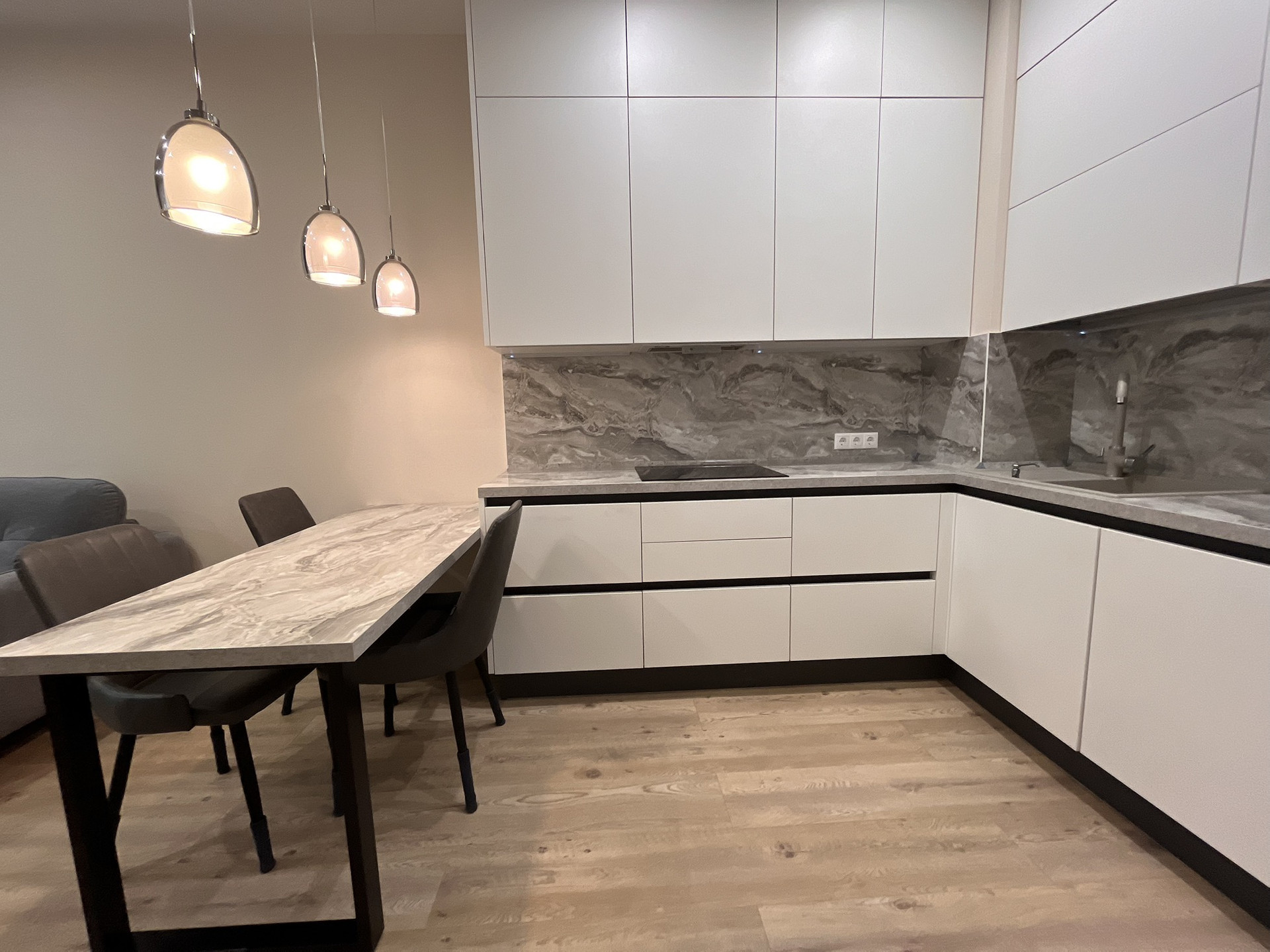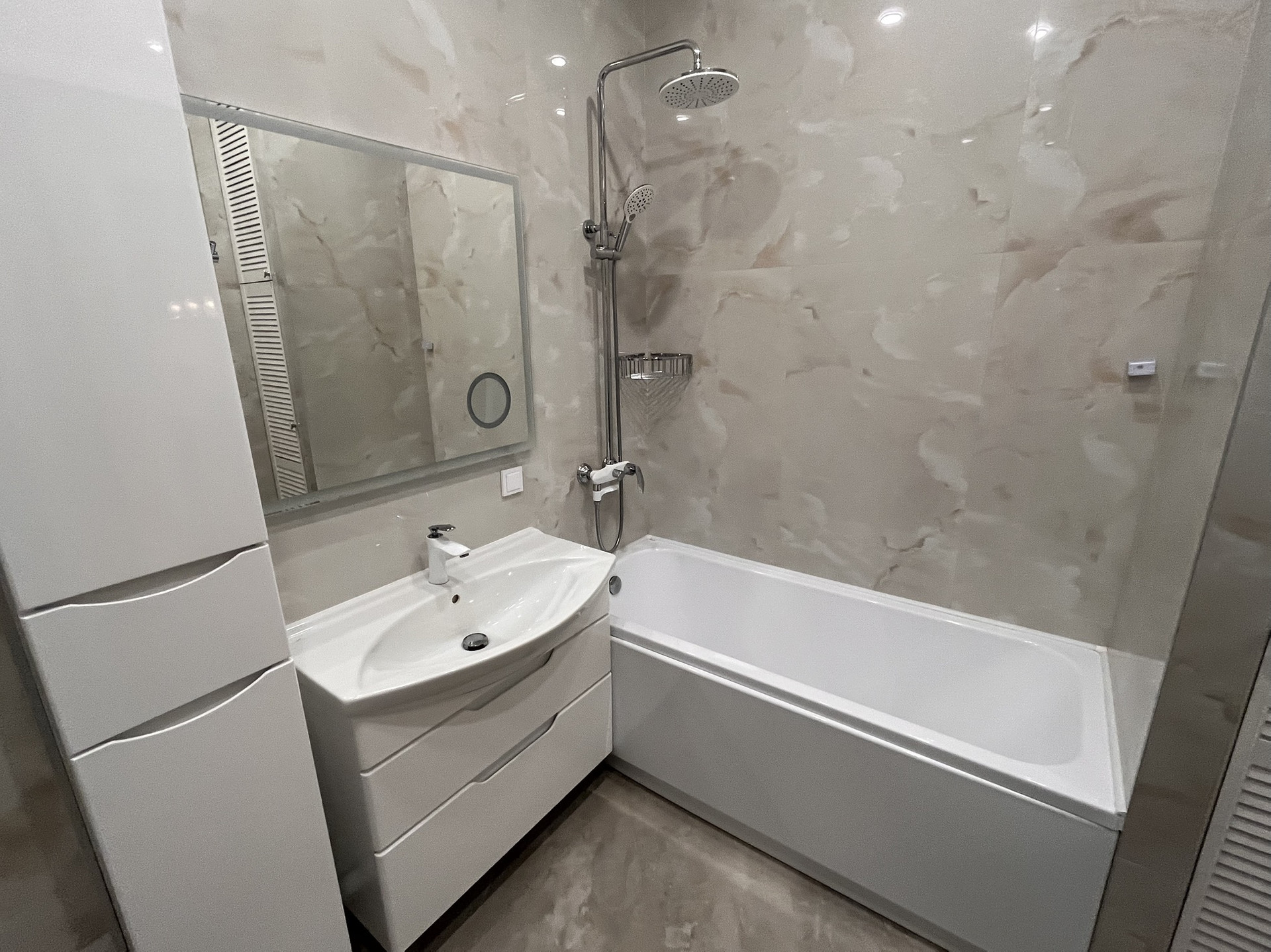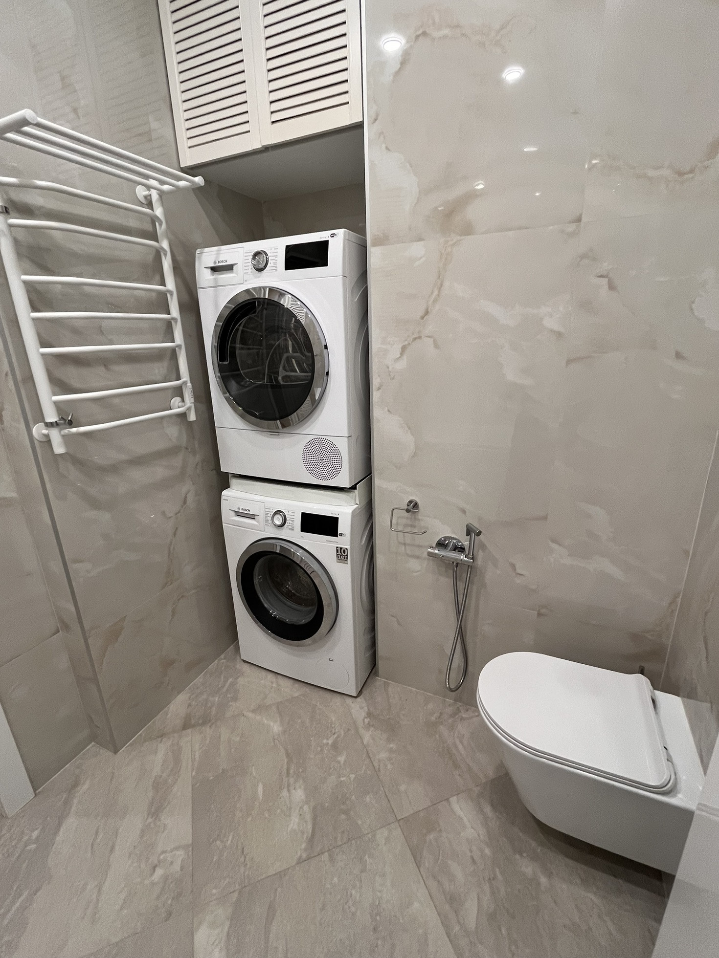 Квартира оснащена полностью всеми удобствами: варочная панель, духовой шкаф, микроволновая печь, посудомоечная машинка, вытяжка, 2 телевизора, 2 кондиционера, стиральная машинка, сушилка, теплый пол, датчики воды.