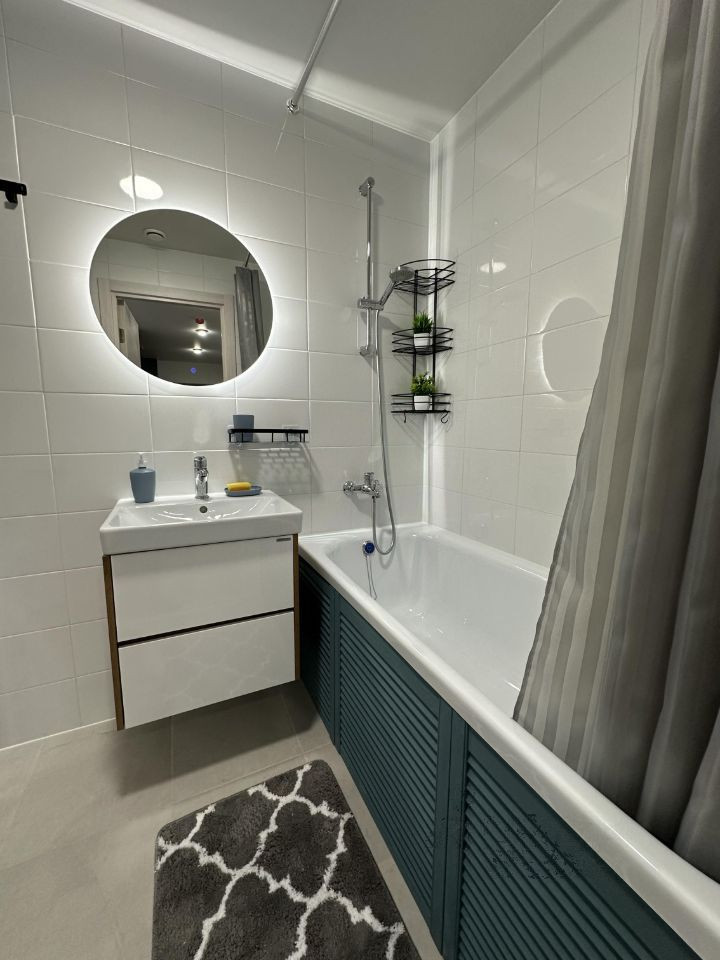 В квартире есть вся мебель, посуда, бытовая техника (стиральная машина, посудомоечная машина, кондиционер, телевизор, холодильник, микроволновая печь,